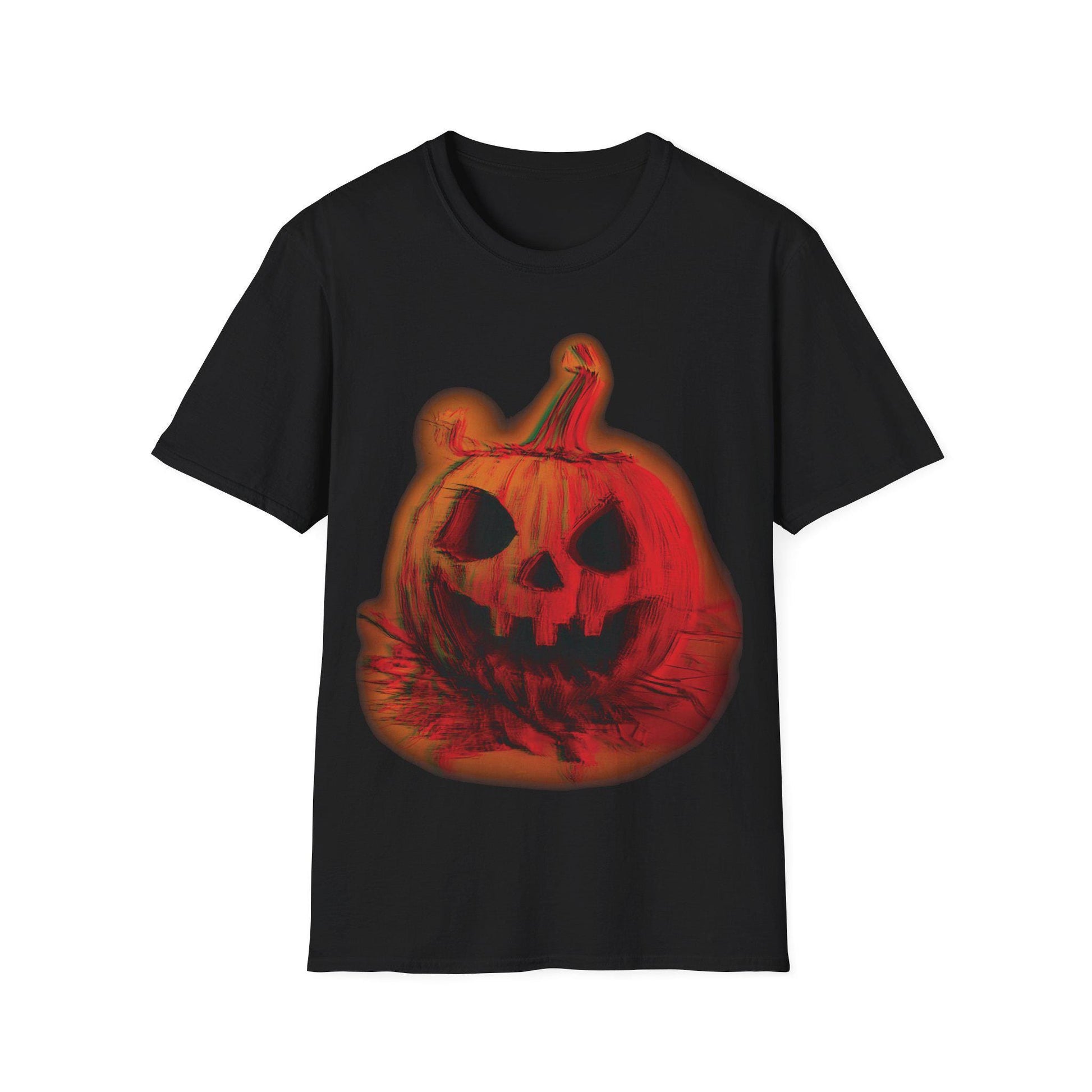 Anaglyph Pumpkin T-Shirt - Creepy Halloween Cotton Tee - Bold Graphic Shirt for Halloween Lovers! Creepy and A bit off for fall.