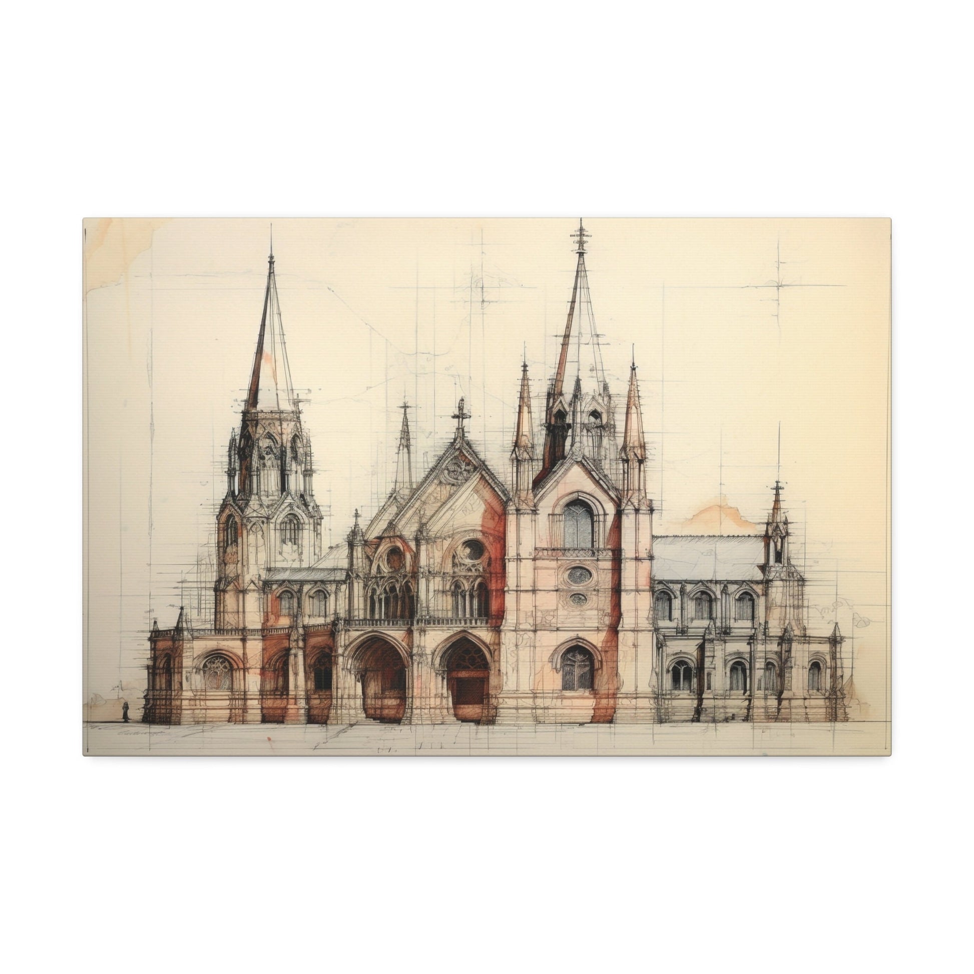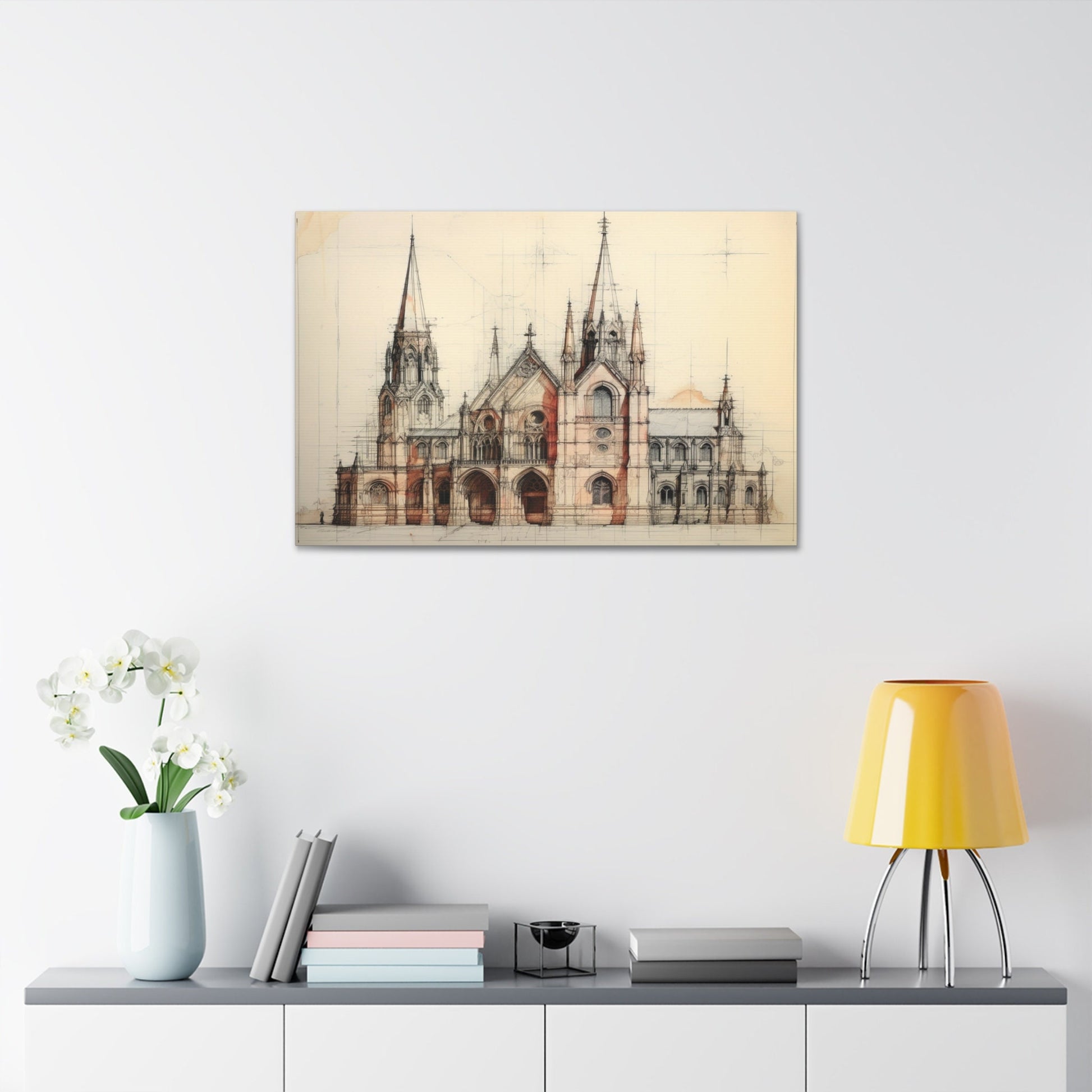 Architectural Drawing of a Church no.2 on weathered canvas | Ai Wall Art for Personal room or Office