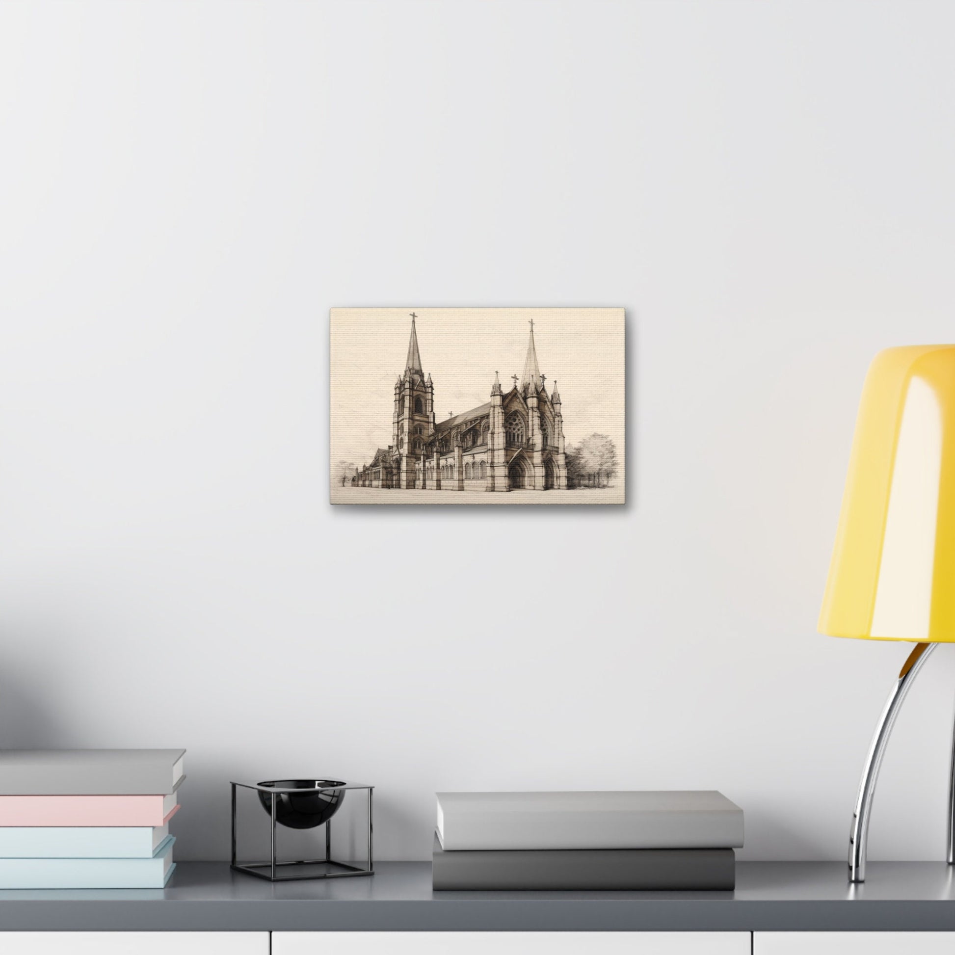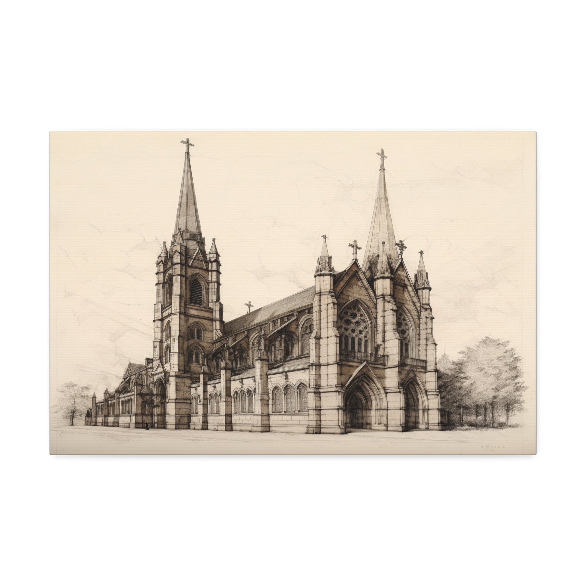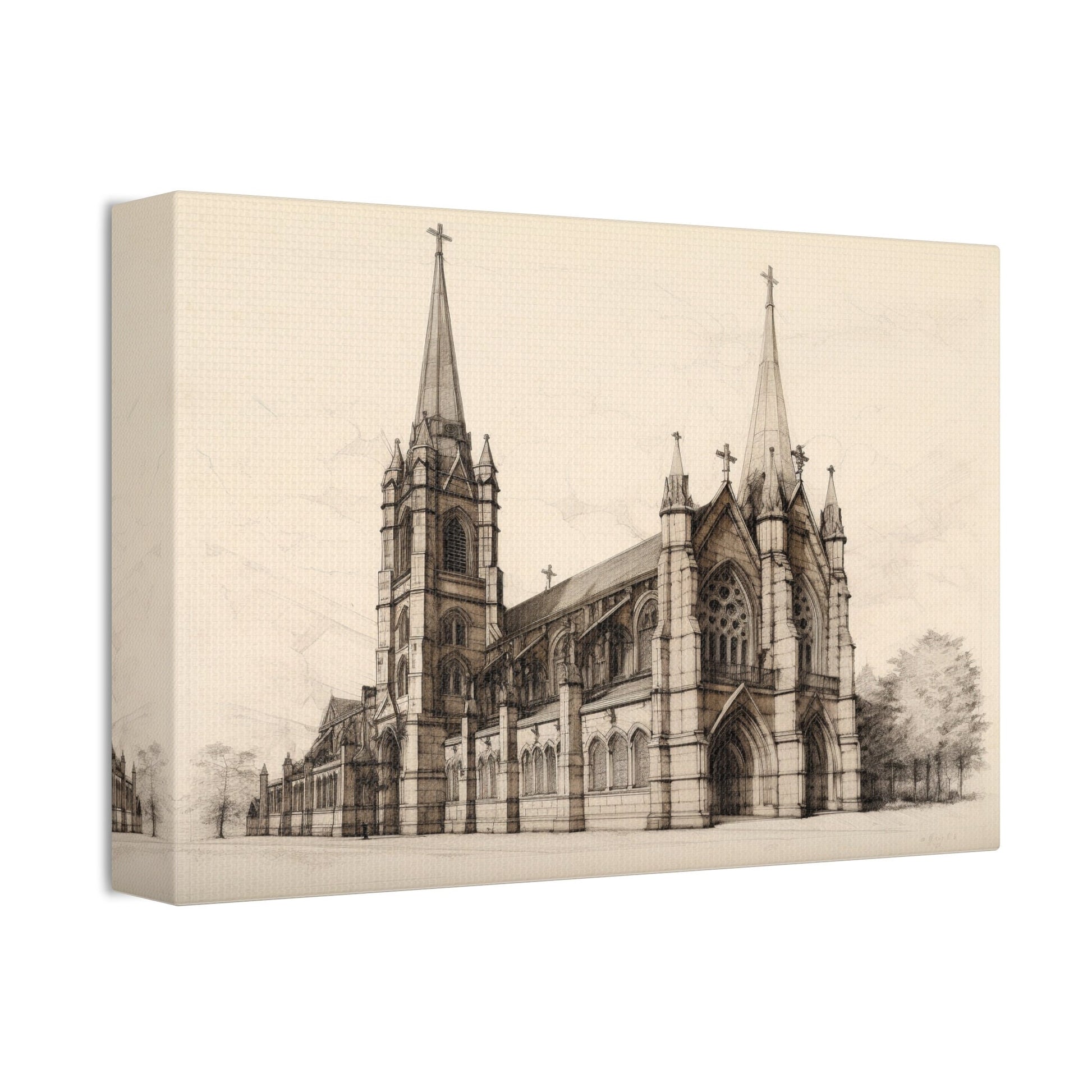 Architectural Drawing of a Church no.3 on weathered canvas | Ai Wall Art for Personal room or Office