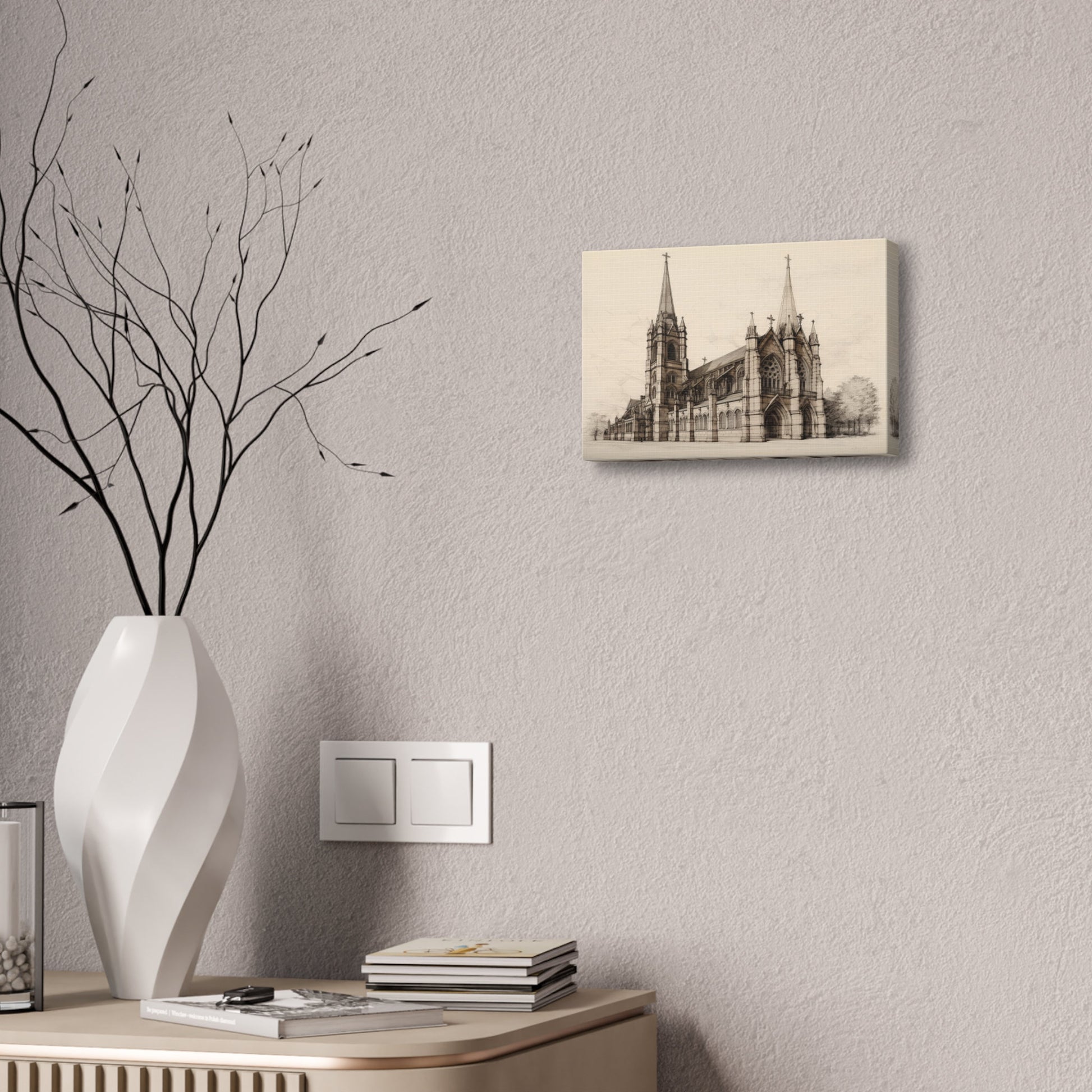 Architectural Drawing of a Church no.3 on weathered canvas | Ai Wall Art for Personal room or Office