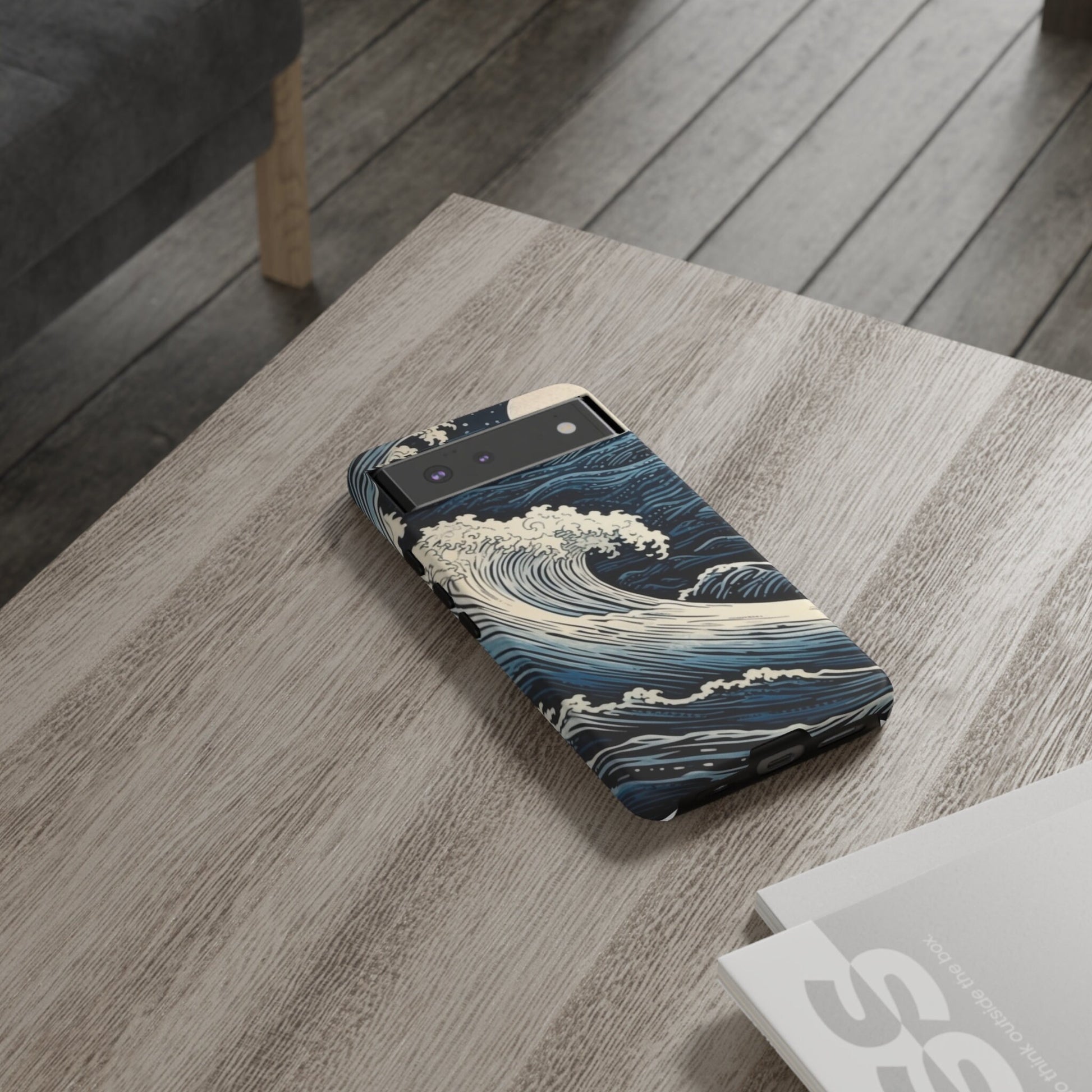 Blue wave Etching Print. Samsung and Google phone Tough Case | Ai Art