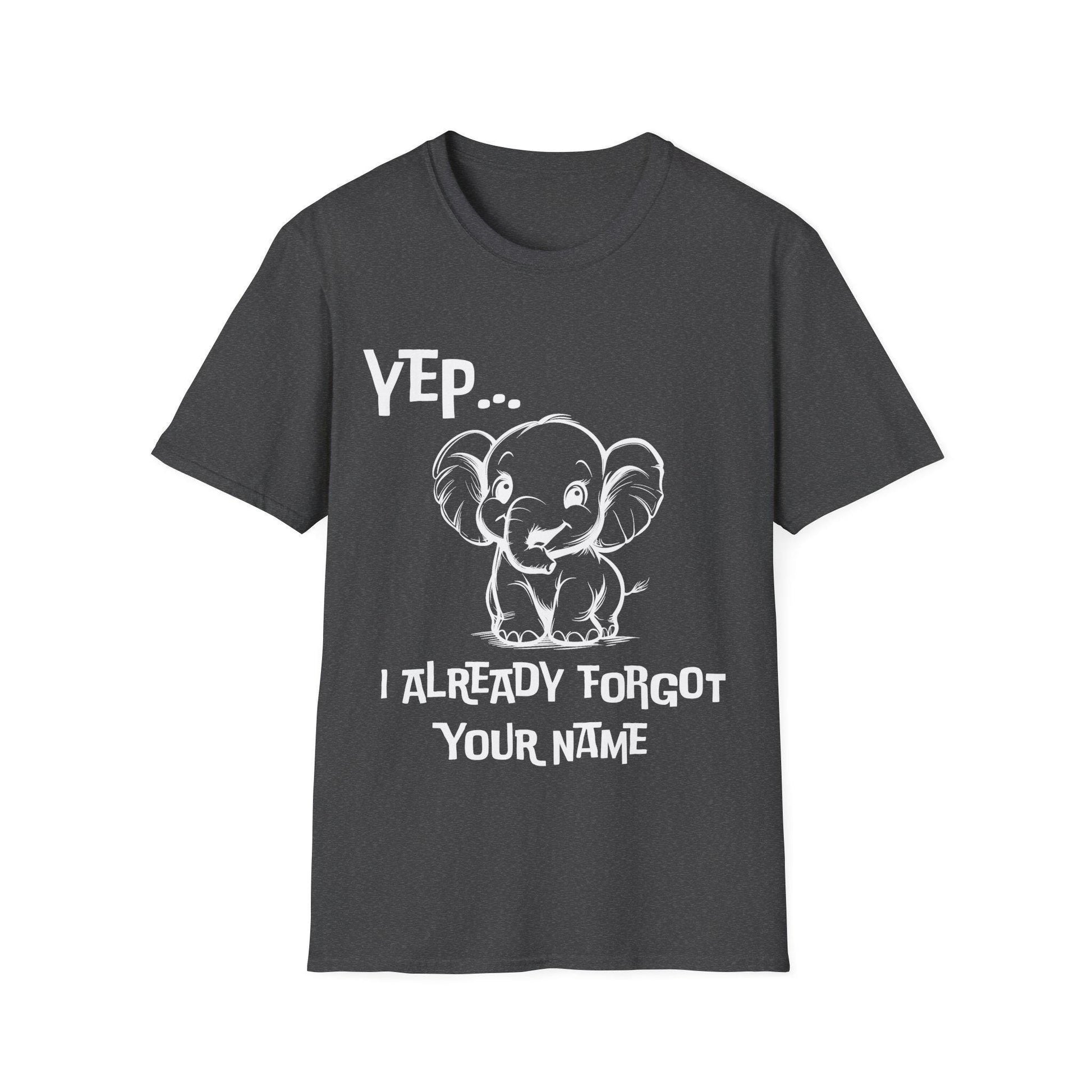 Cute Baby Elephant T-Shirt, Funny Tee, Cartoon Shirt, Elephant Lover Gift, Forgetful Graphic Tee, yep... I already forgot your name
