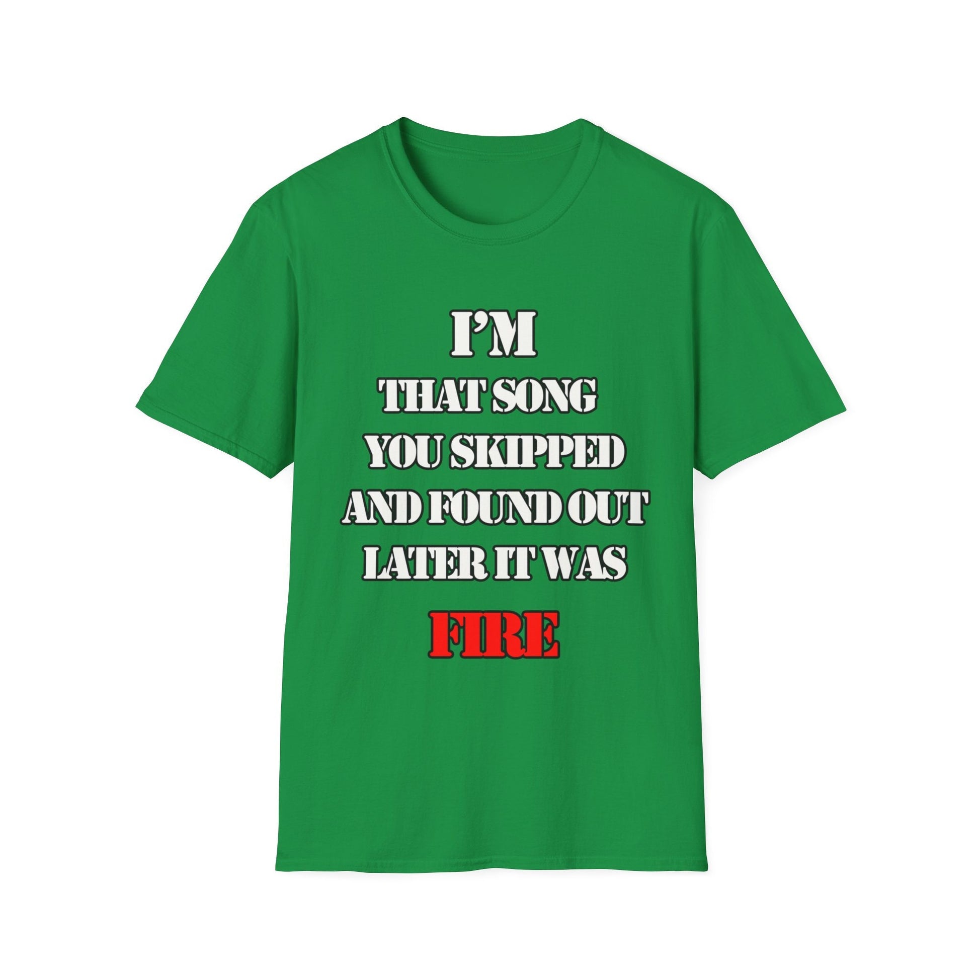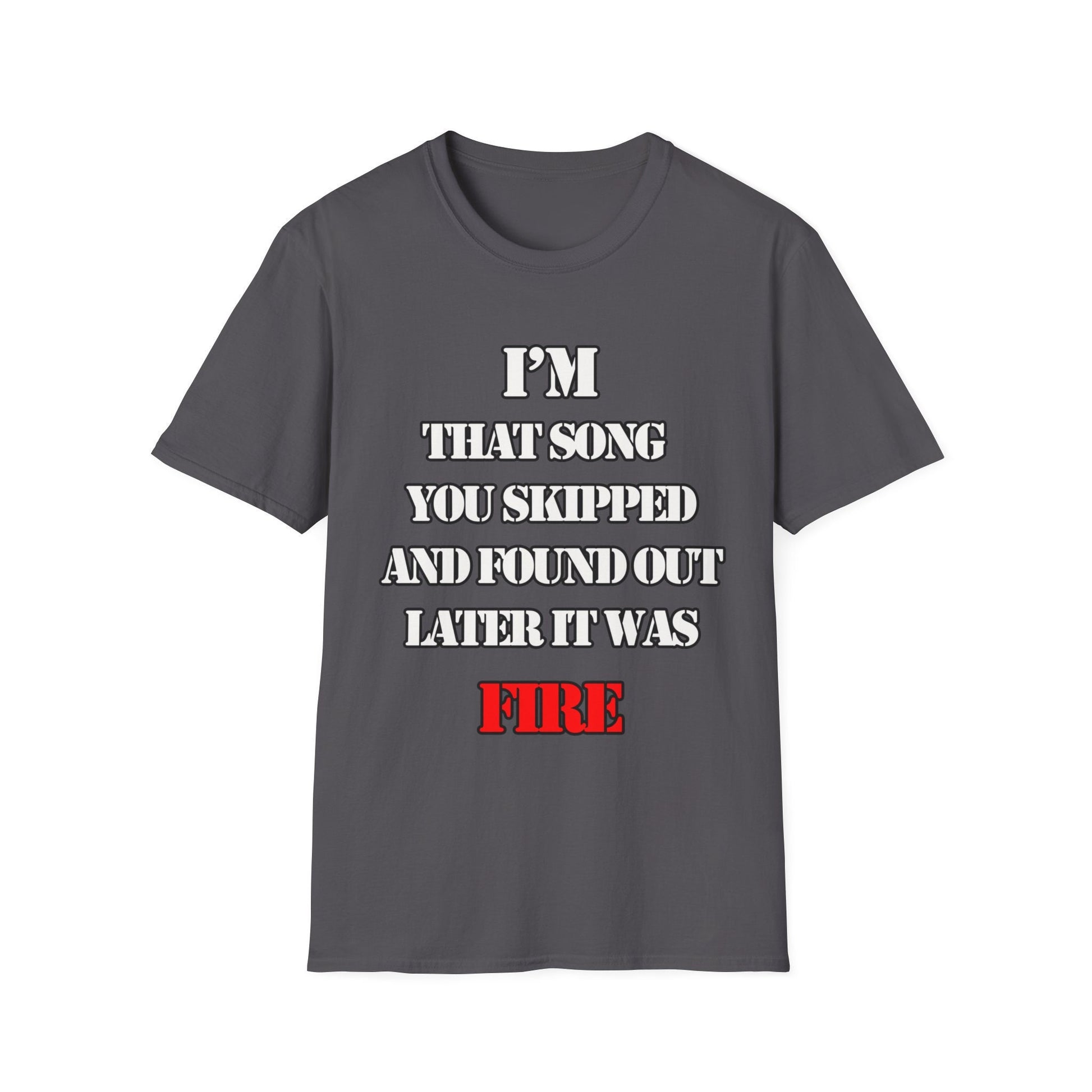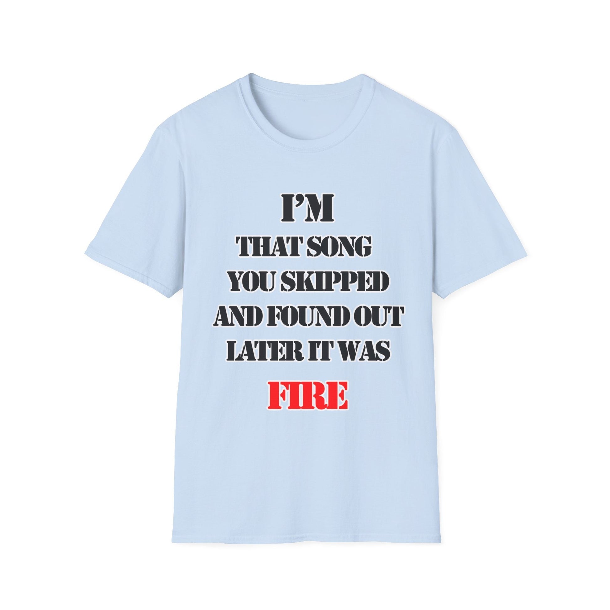 Get the last word after a breakup with this funny and unique graphic t-shirt! Perfect for anyone who wants to make a statement, this breakup tee features a clever quote: 'I'm that song you skipped and found out later it was FIRE!' Made from high-quality materials, this shirt is comfortable and stylish. It's an ideal gift for friends going through a breakup or anyone who loves witty and empowering quotes.