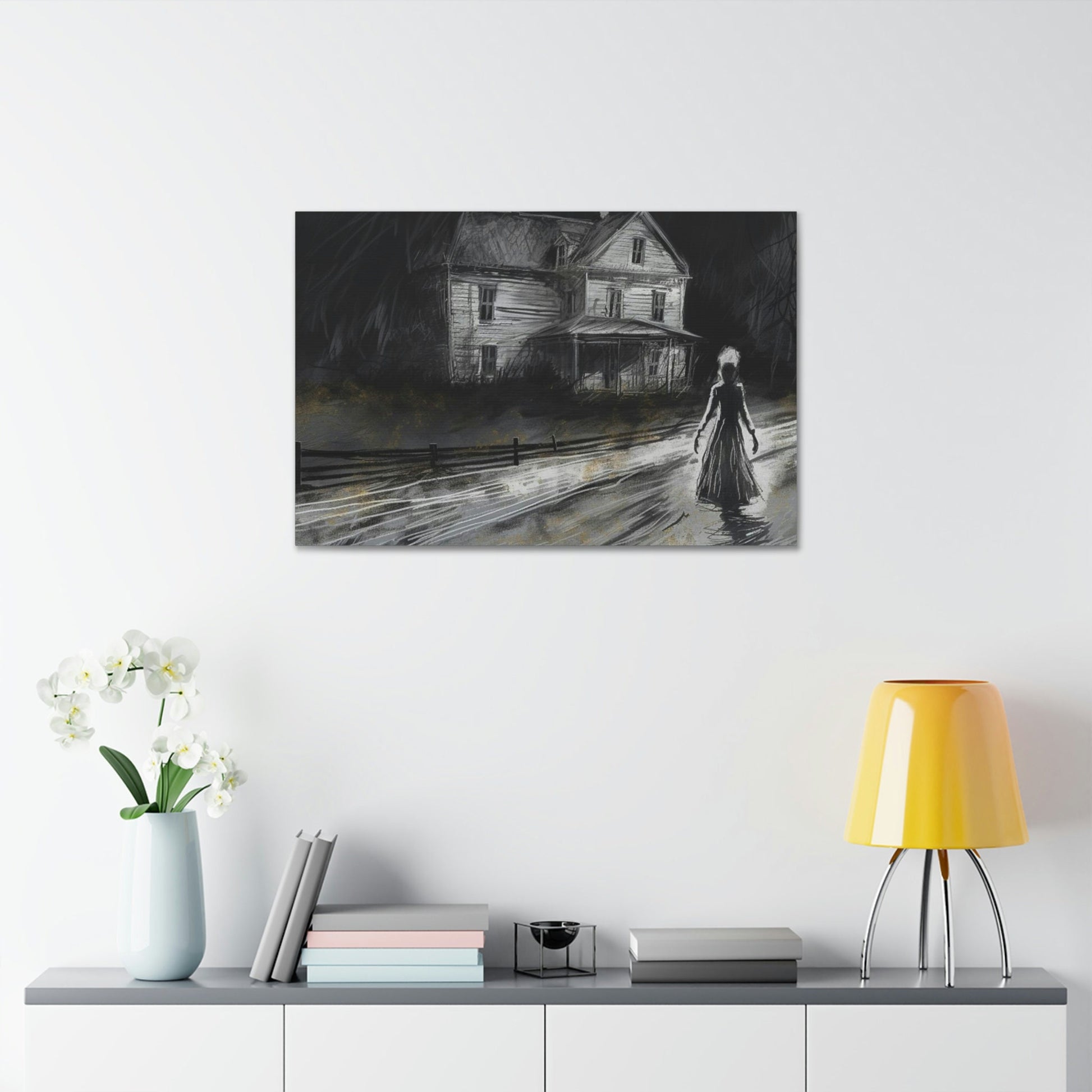 Haunting Charcoal and Pastel Sketch of a Slender Dark Woman on a Lonely Path | Ai Art