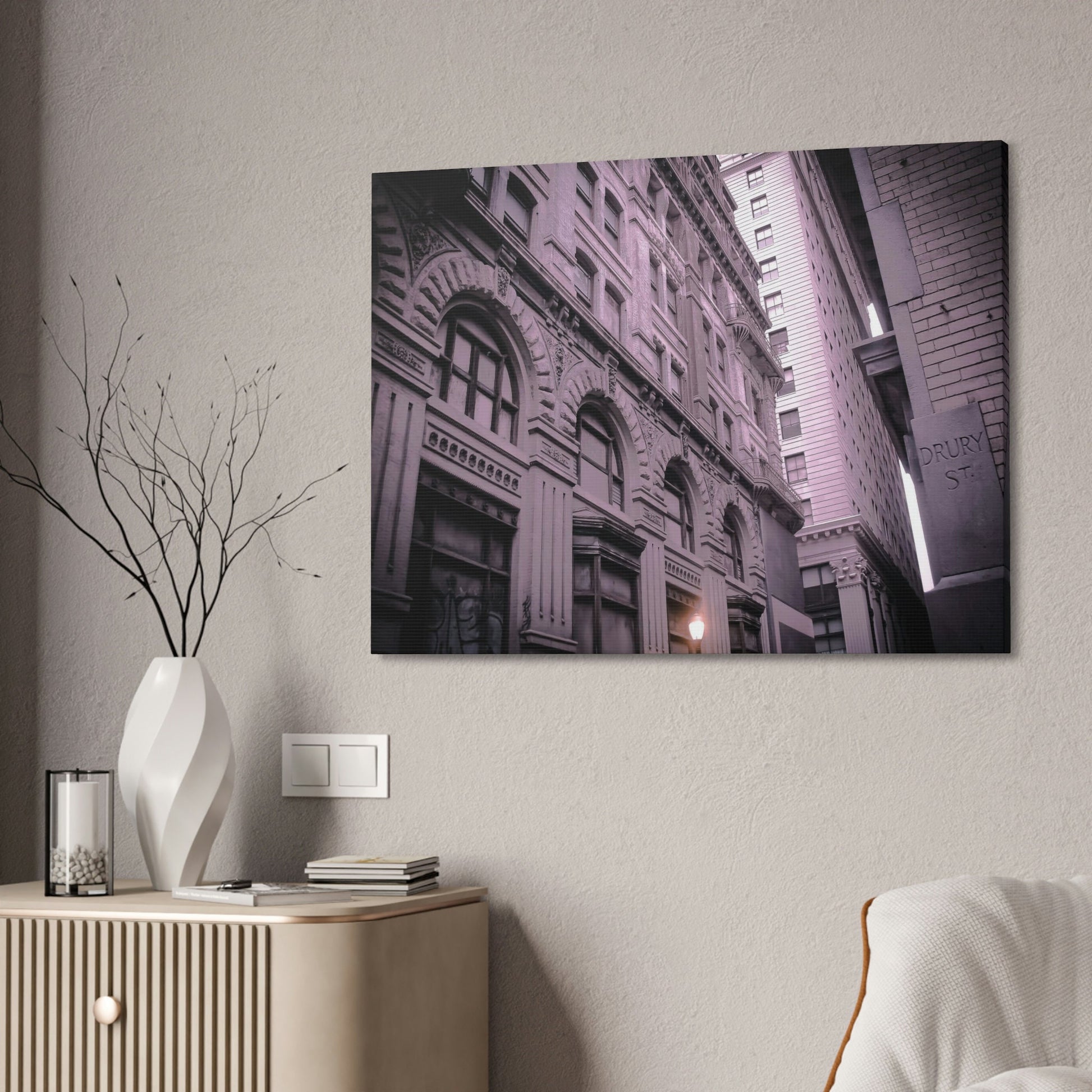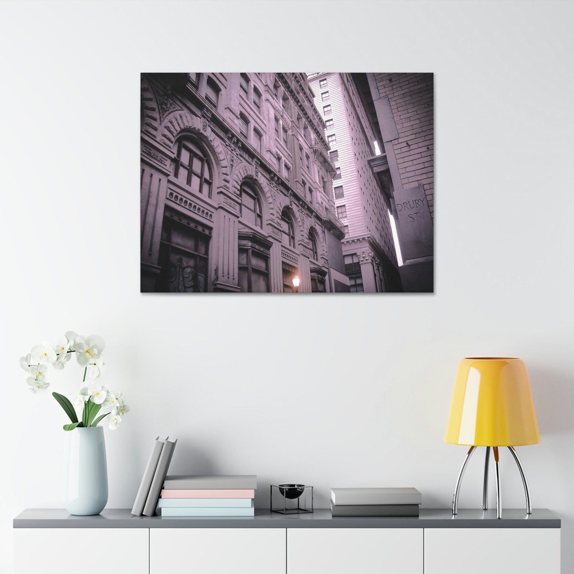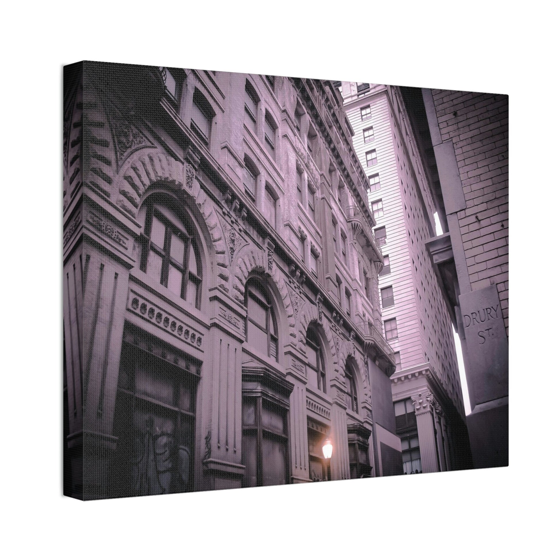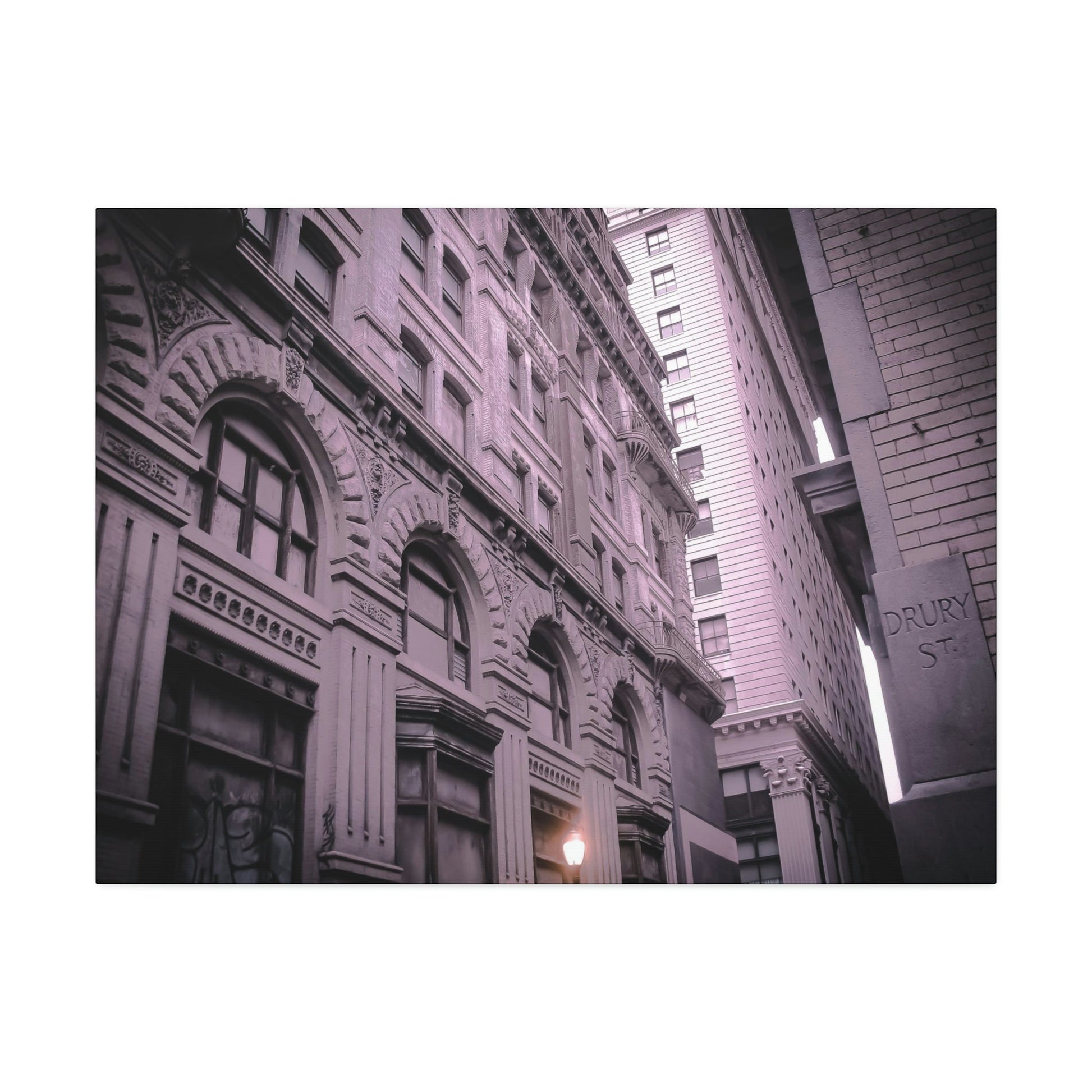 Photographic depiction of Drury Street in Philly with a twinge of Lilac to bright out the burst of light from the streetlamp.