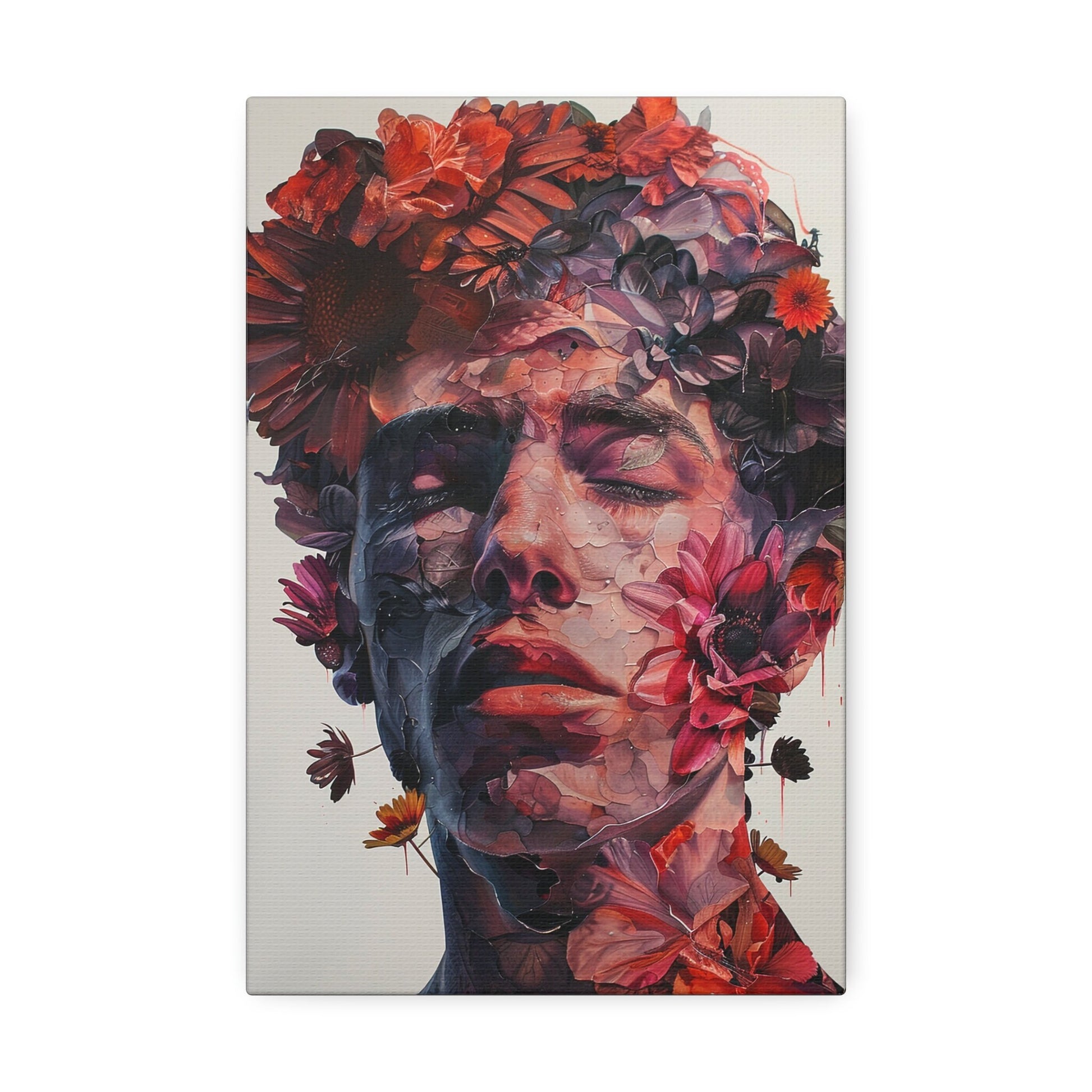 This image features an Oil Painted Flower Boy. Unique Wall Art for your Home, Apartment, Dorm Room. Folk Art Inspired Home Decor. Collage Style.Thought Provoking.