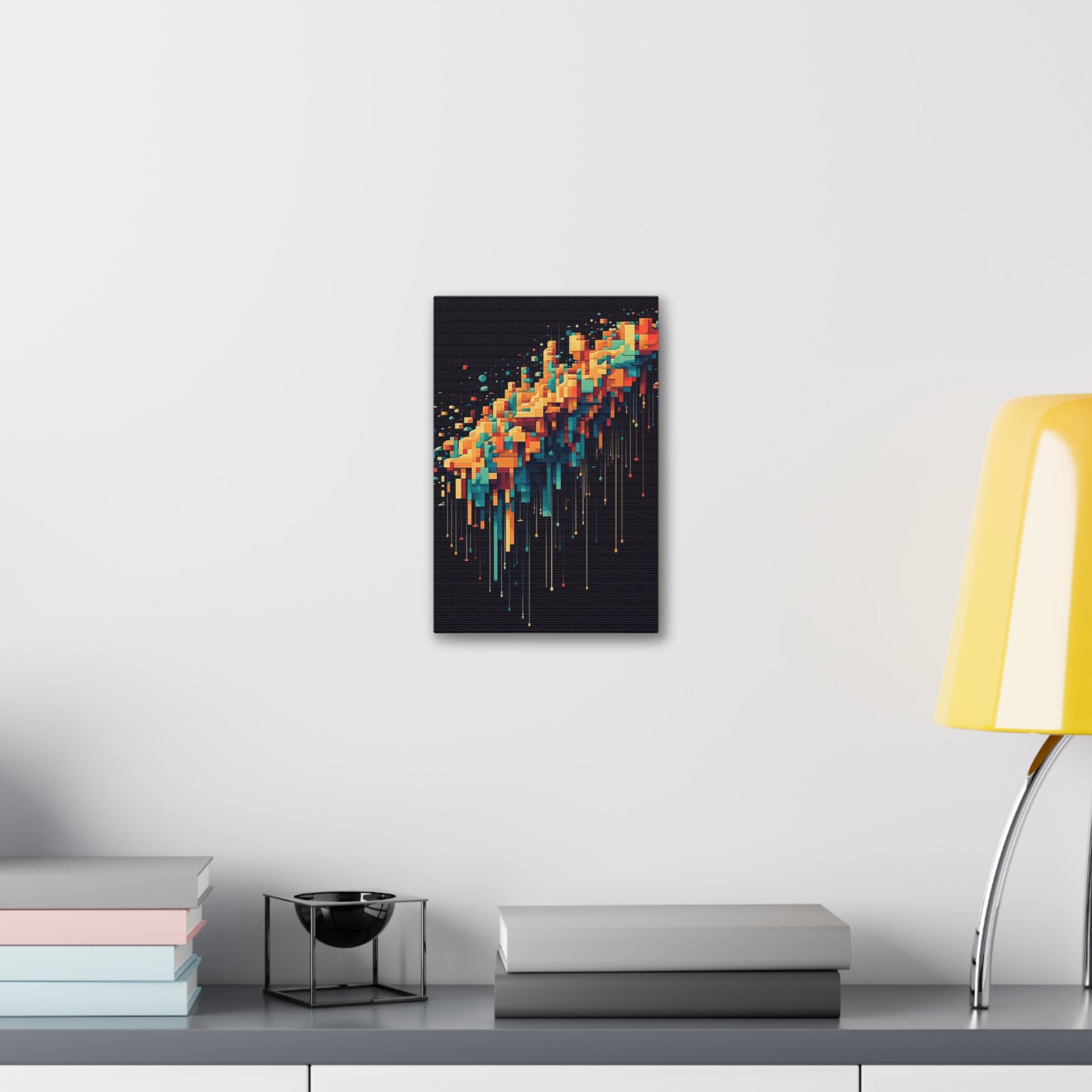 Pixel Drip: AI generated art crossing pixel art mixed with paint pouring techniques. Multicolored wall art.