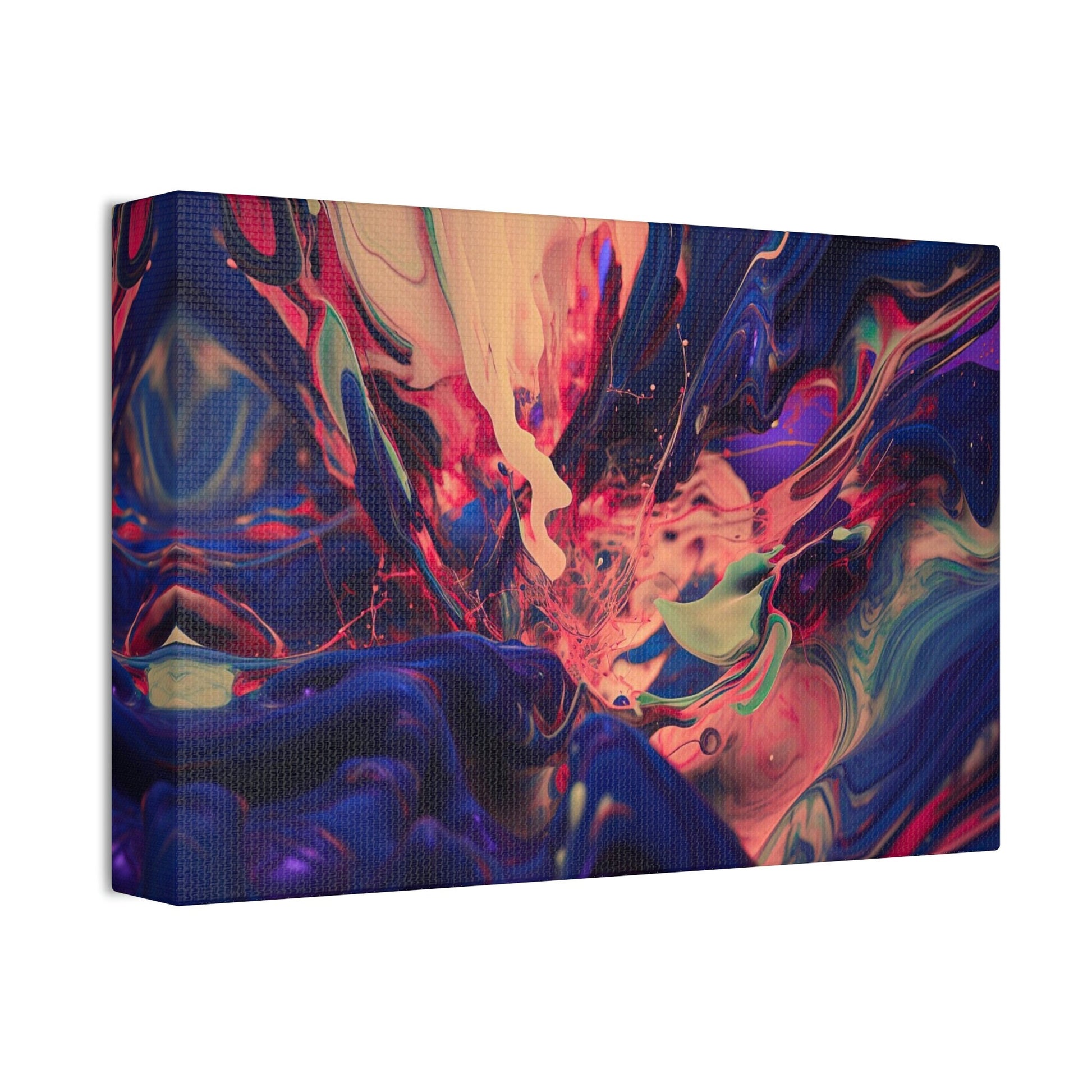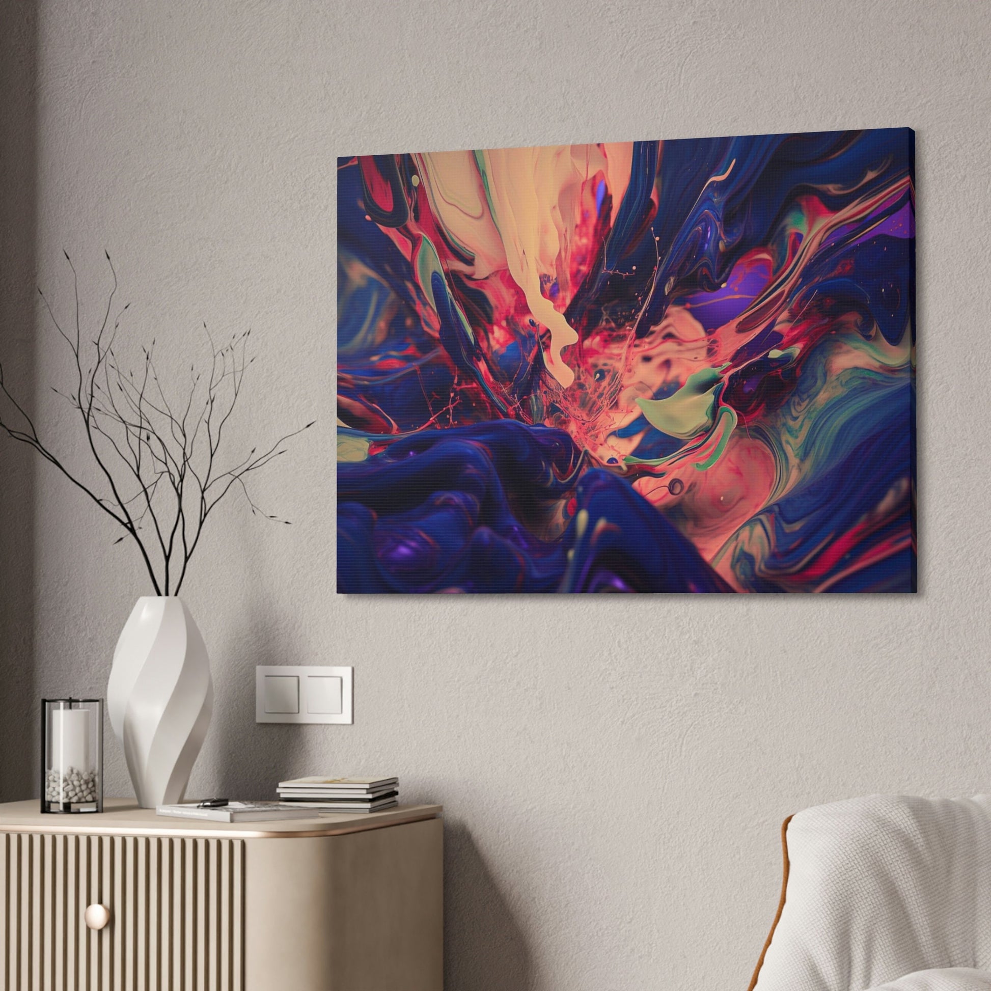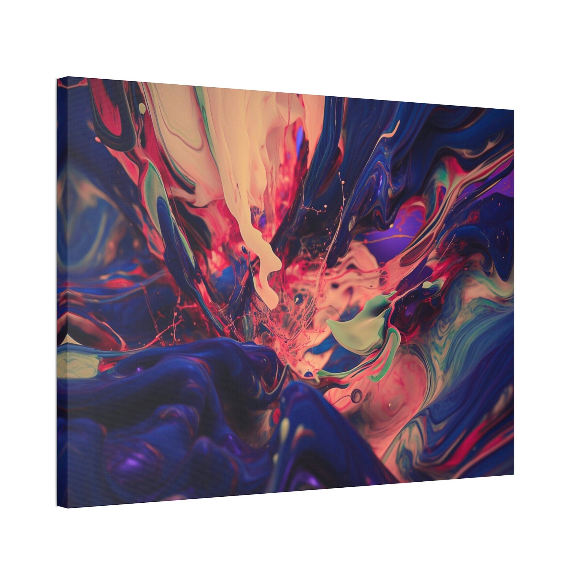 Purple Paint Tsunami: Ai Wall Art Print with purple, pink, peach, gray and blue shades. Similar to acrylic pouring technique, 3D style.