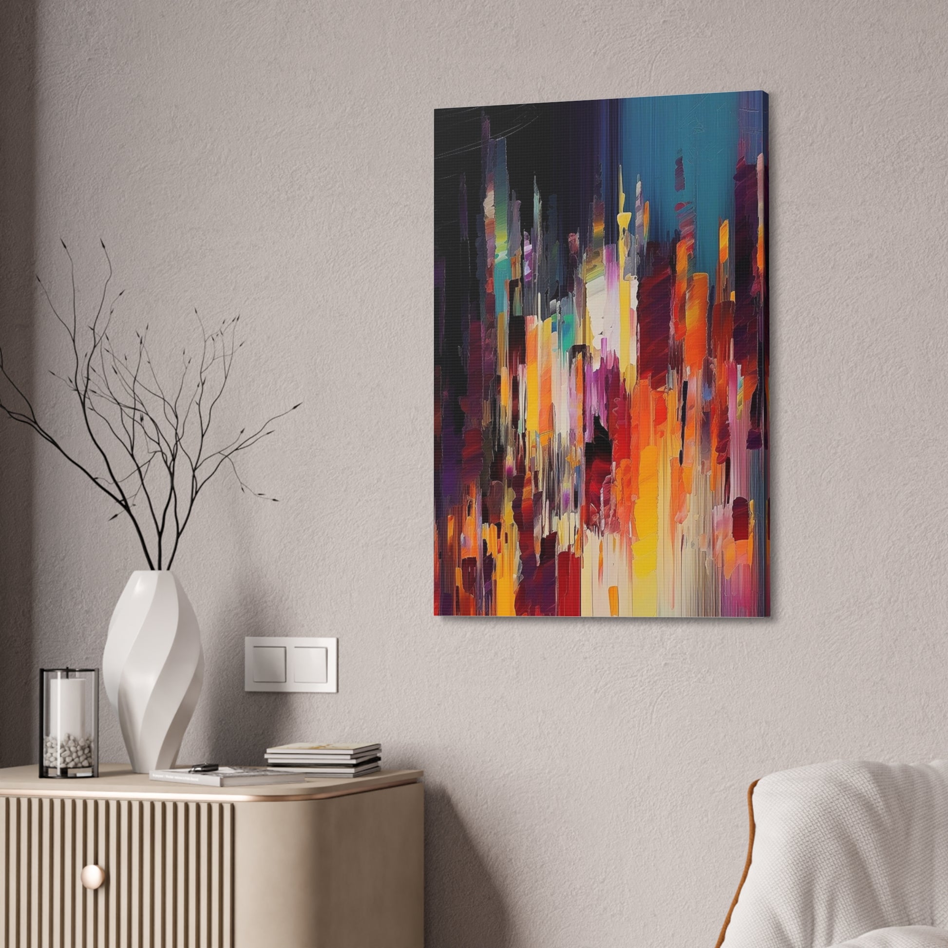 Multicolored abstract wall art conversation starter. This unique piece will create a stir. Too cool. The art was created using painstakingly crafted word prompts submitted to AI technology with the intention of developing a breathtaking visual display guaranteed to create discussion..