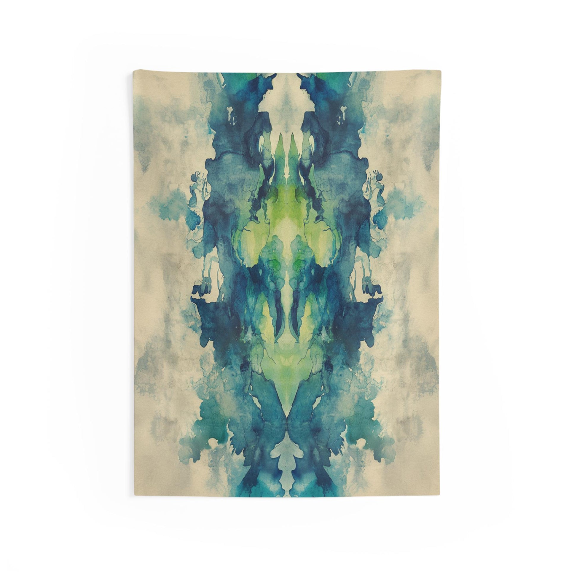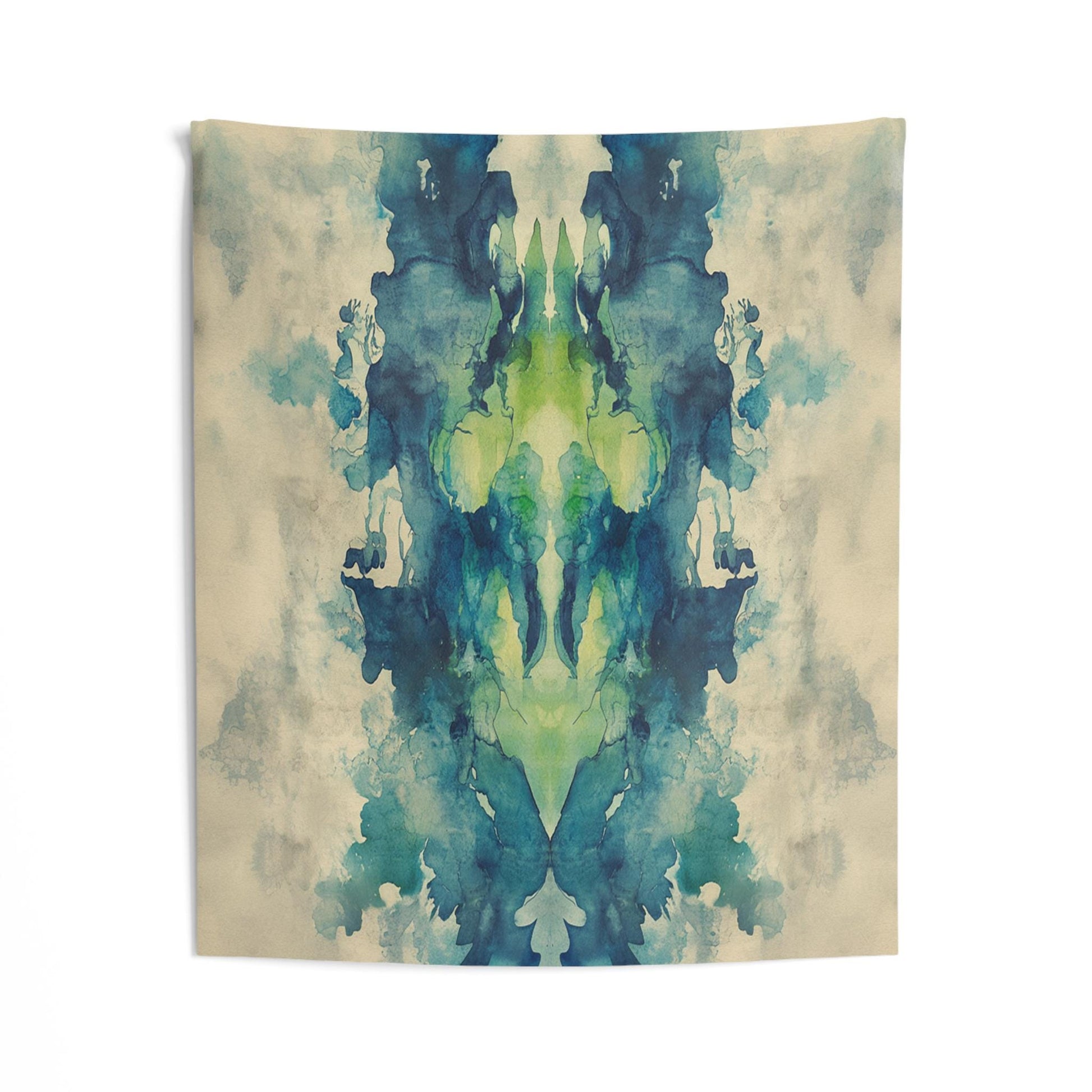 Rorschach Test Inspire Green and Blue Wall Tapestry, Art Print Tapestry, Black Background Tapestries, Home Decor, Wall Art