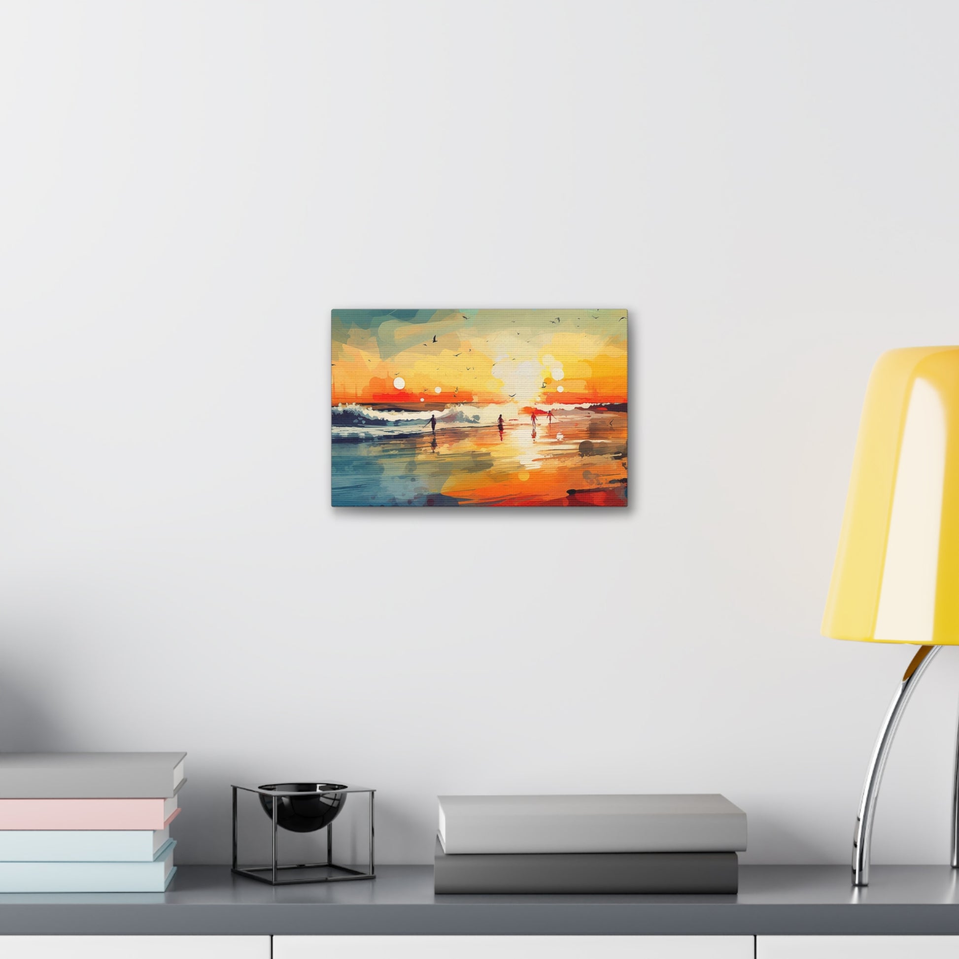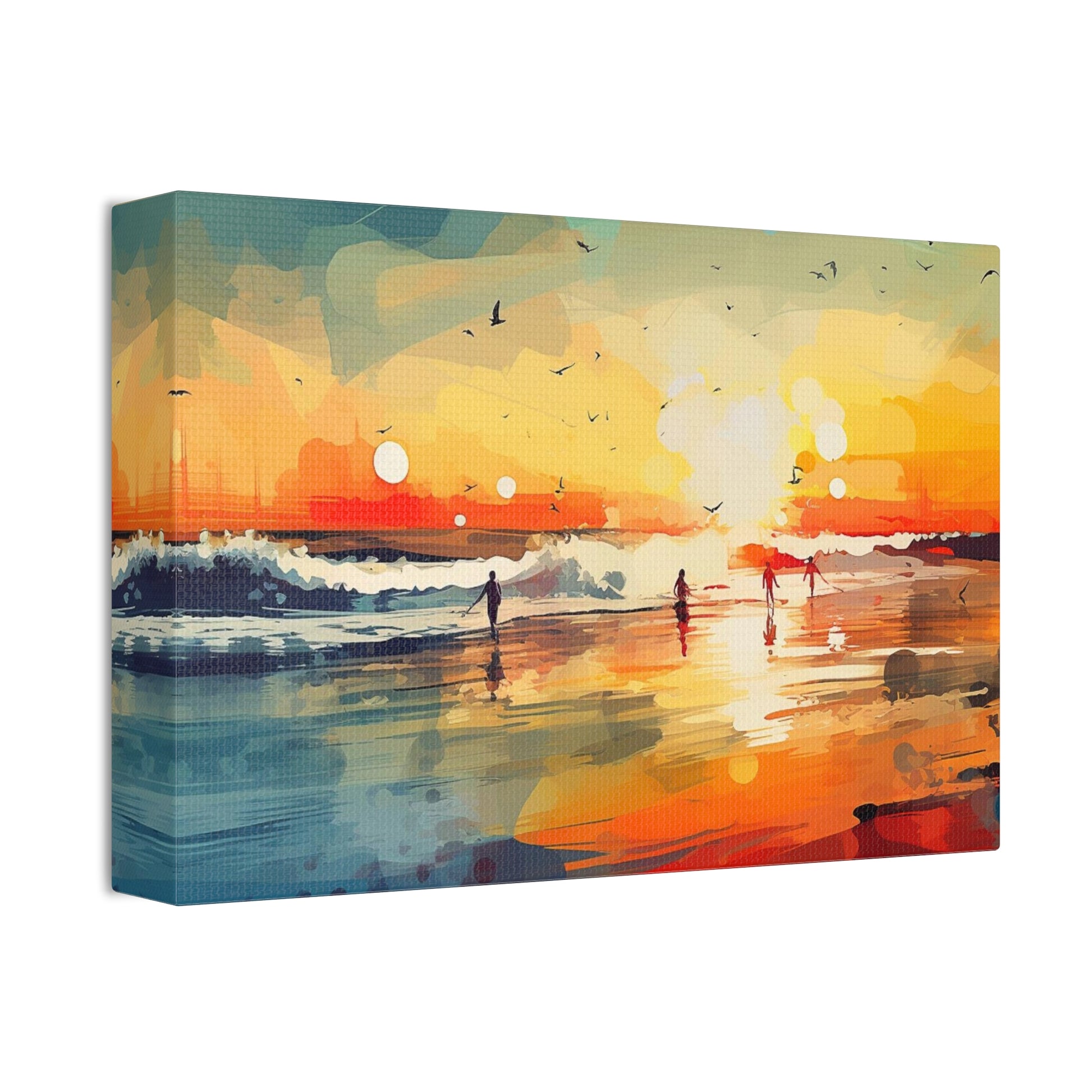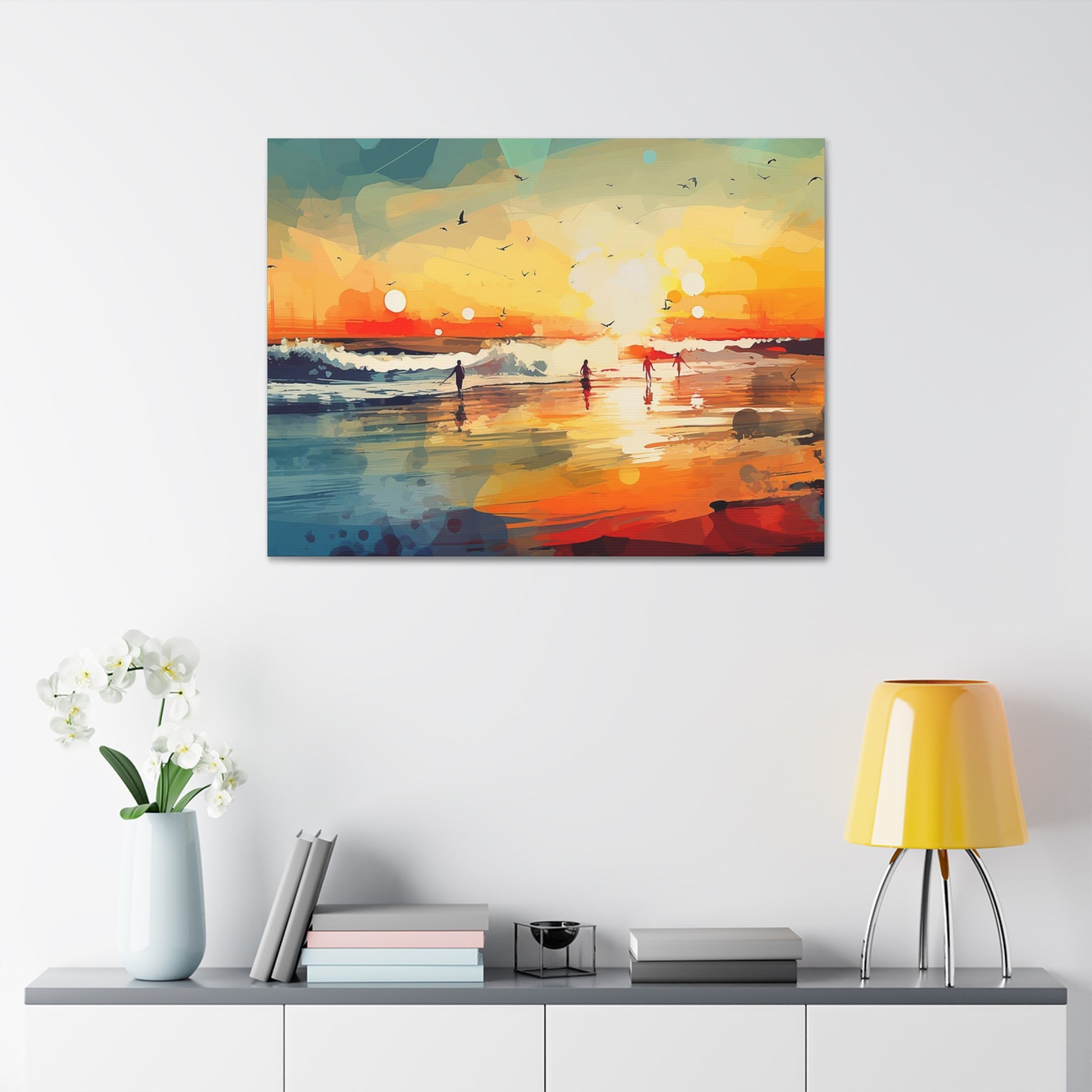 AI art rendered to resemble an abstract art style rendition of a surfers on a beach at sunset. The art was created using painstakingly crafted word prompts submitted to AI technology with the intention of developing a breathtaking visual display guaranteed to create discussion and reflection.