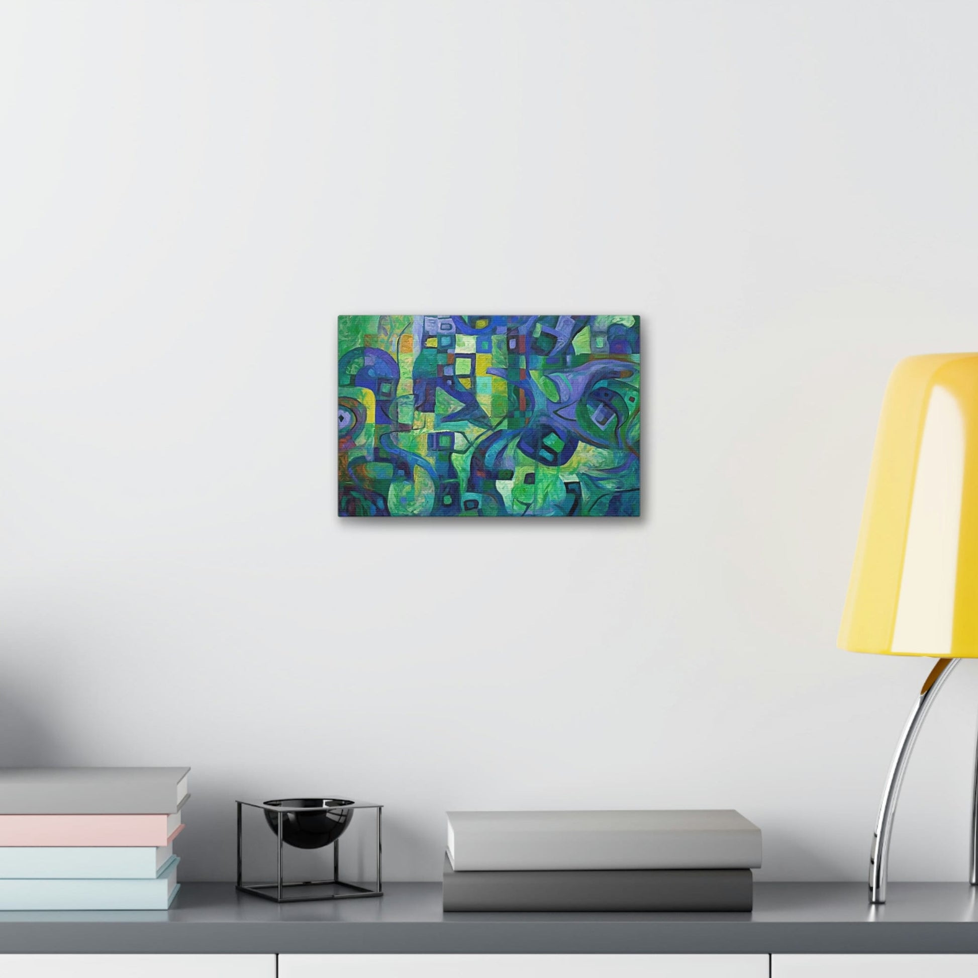 The Octopus: Ai Generated Abstract Painting Style Wall Art. Brightly colored piece. Will brighten up a dull room. Green & purple highlights.