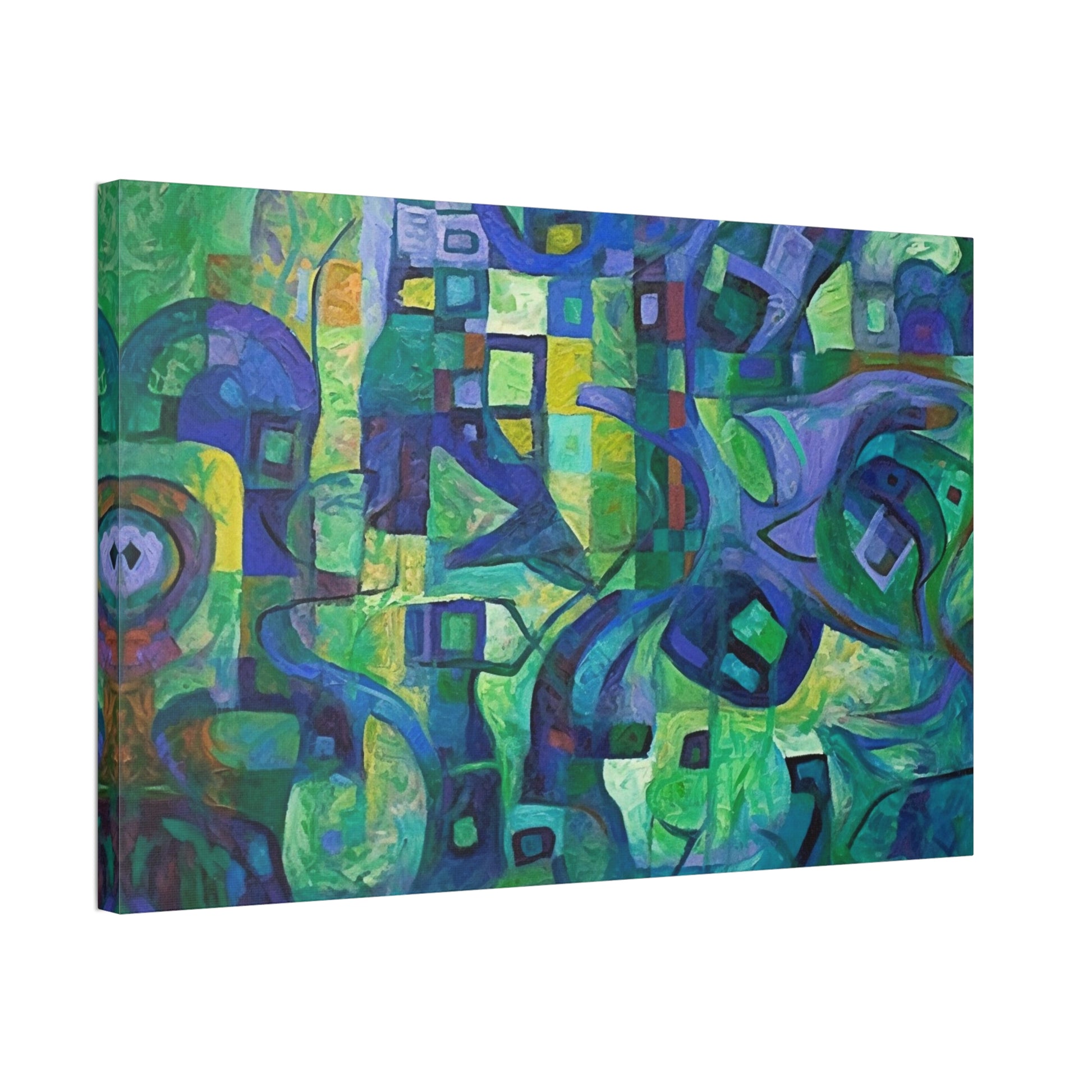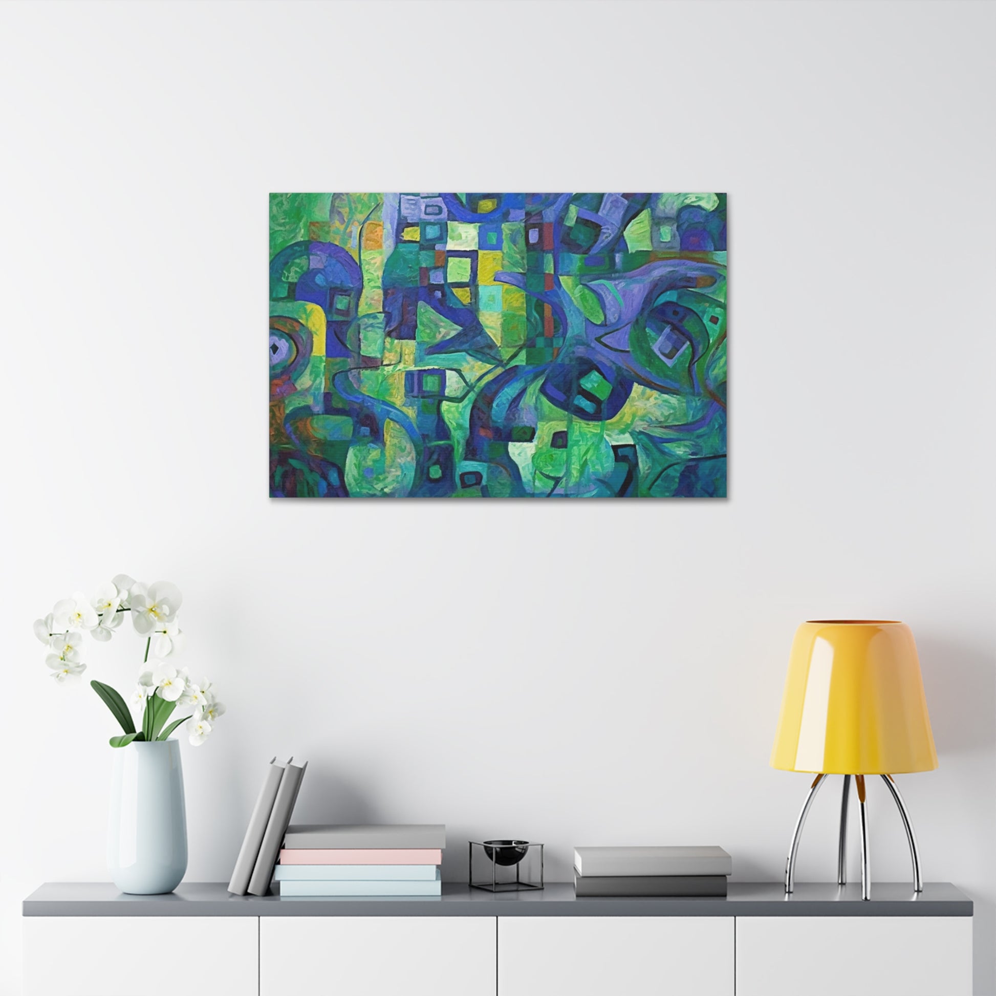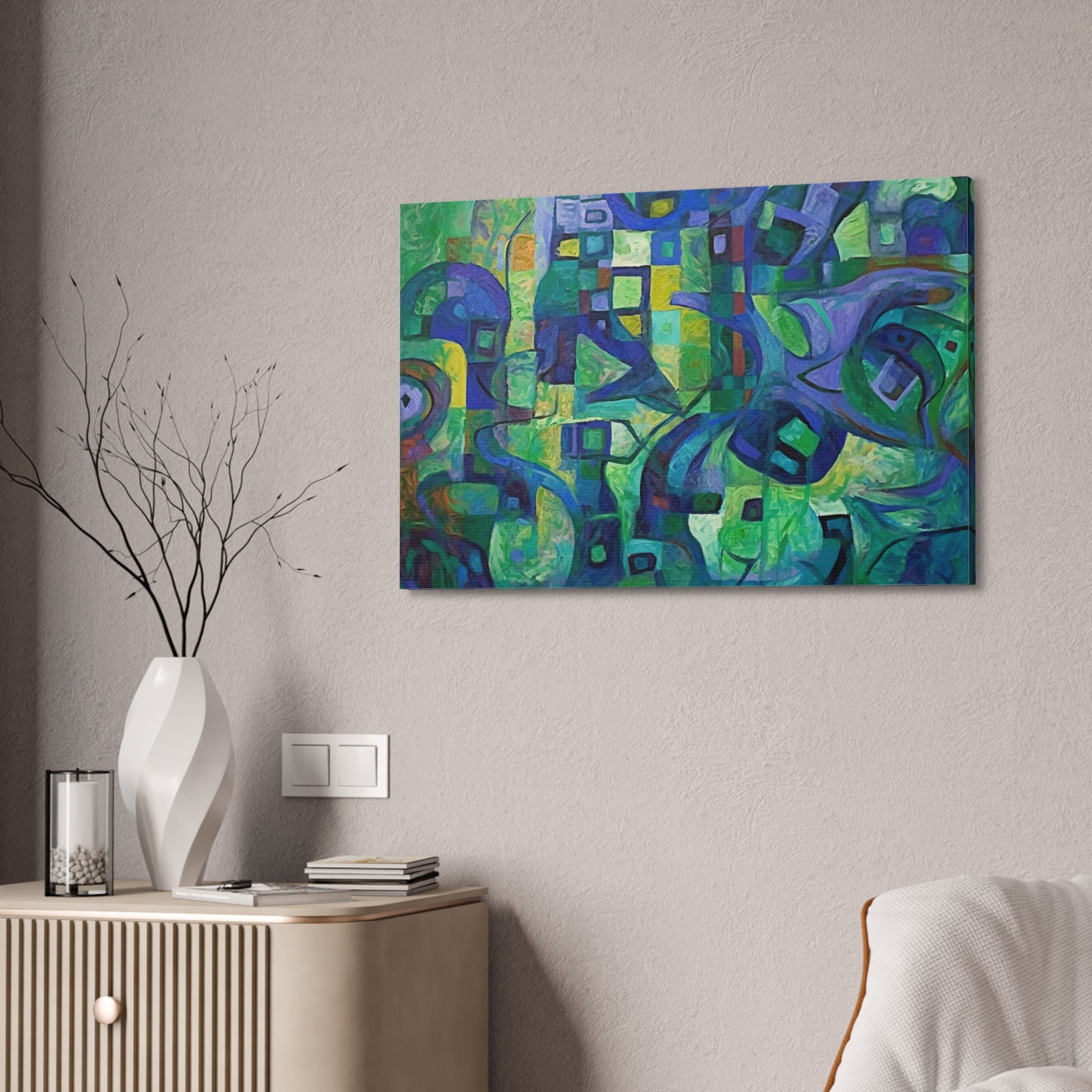 The Octopus Ai Generated Abstract Painting Style Wall Art. Brightly colored piece. Will brighten up any dull room. Green and purple dominate