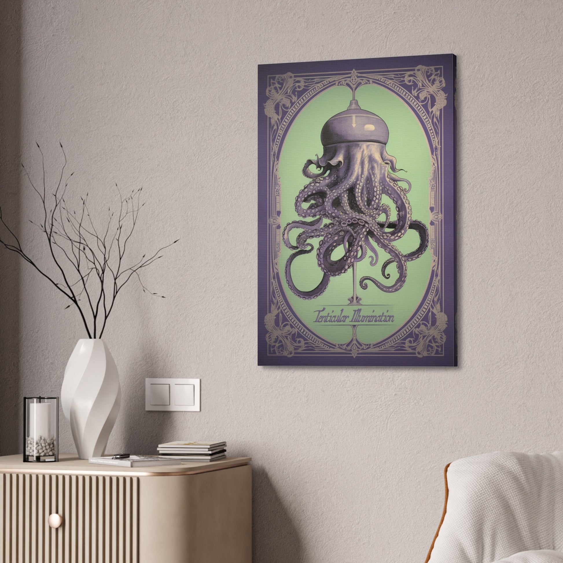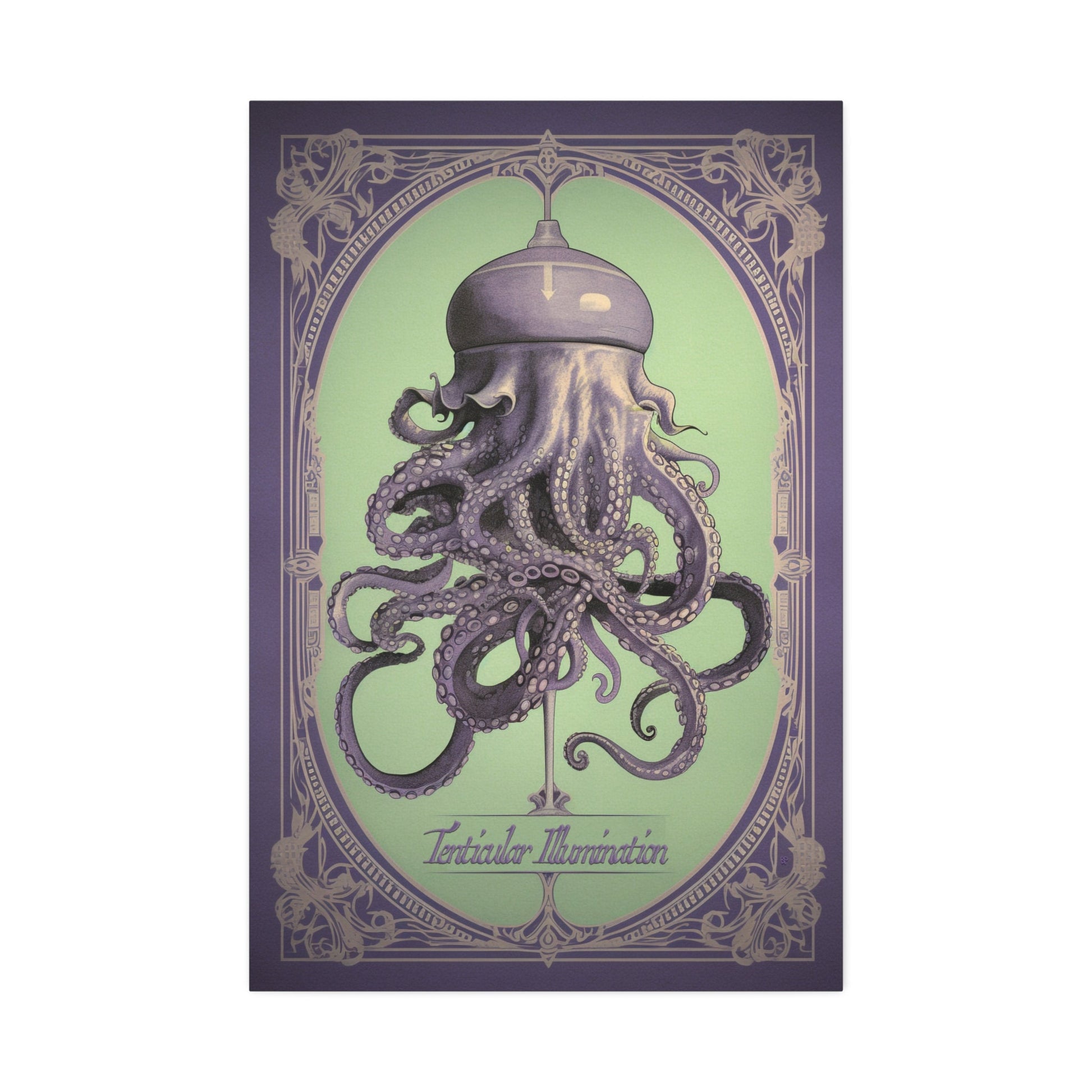 Unique College Dorm or New Apartment Wall Art | Art Nouveau liquor advertisement style print for an octopus light. Ai generated.