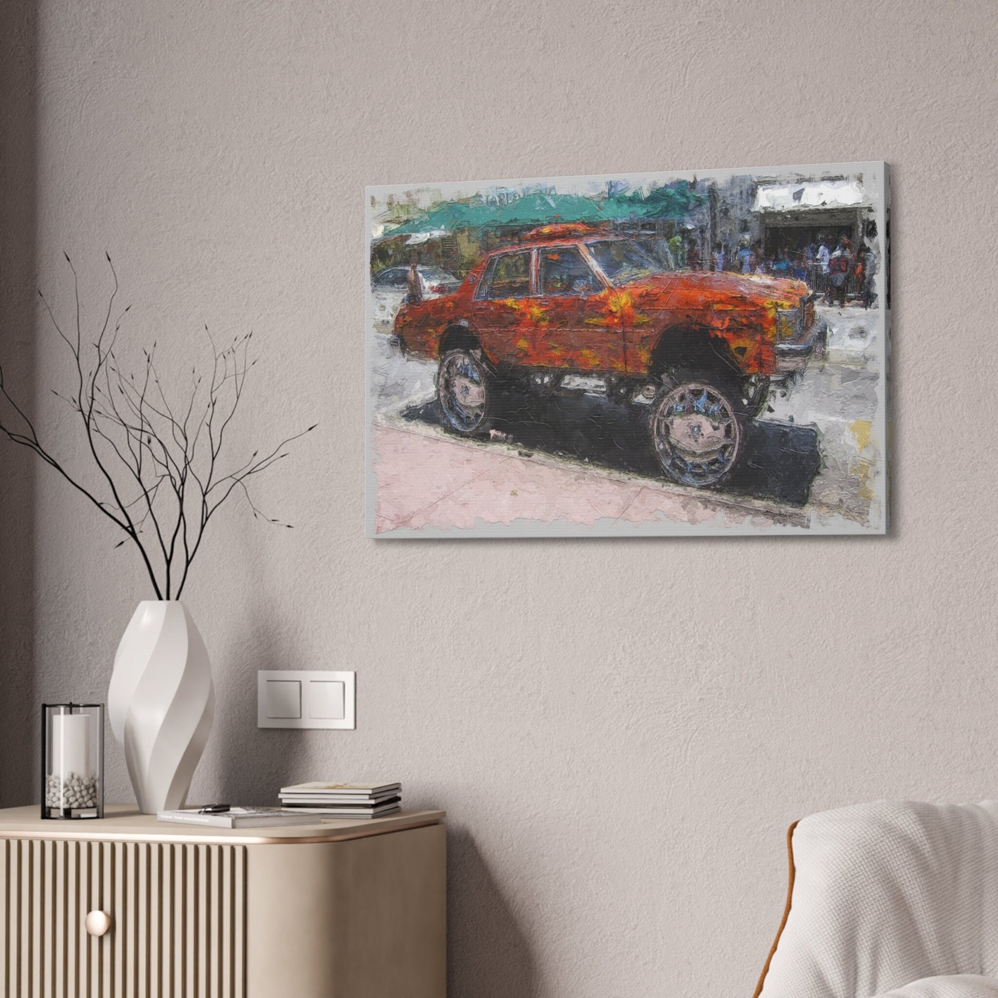 Unique College Dorm or New Apartment Wall Art | Oil Painted Car with Huge Rims. Ai generated.
