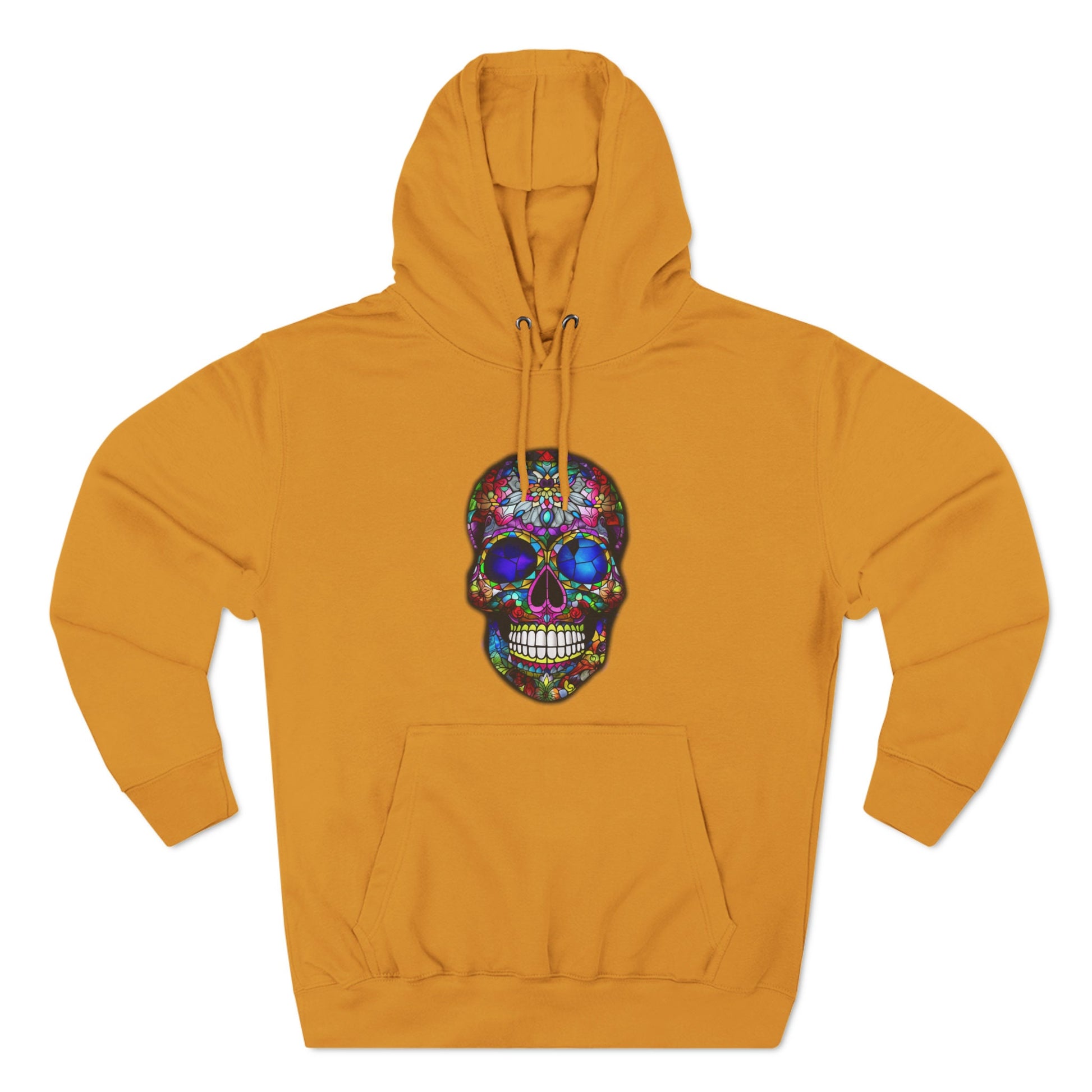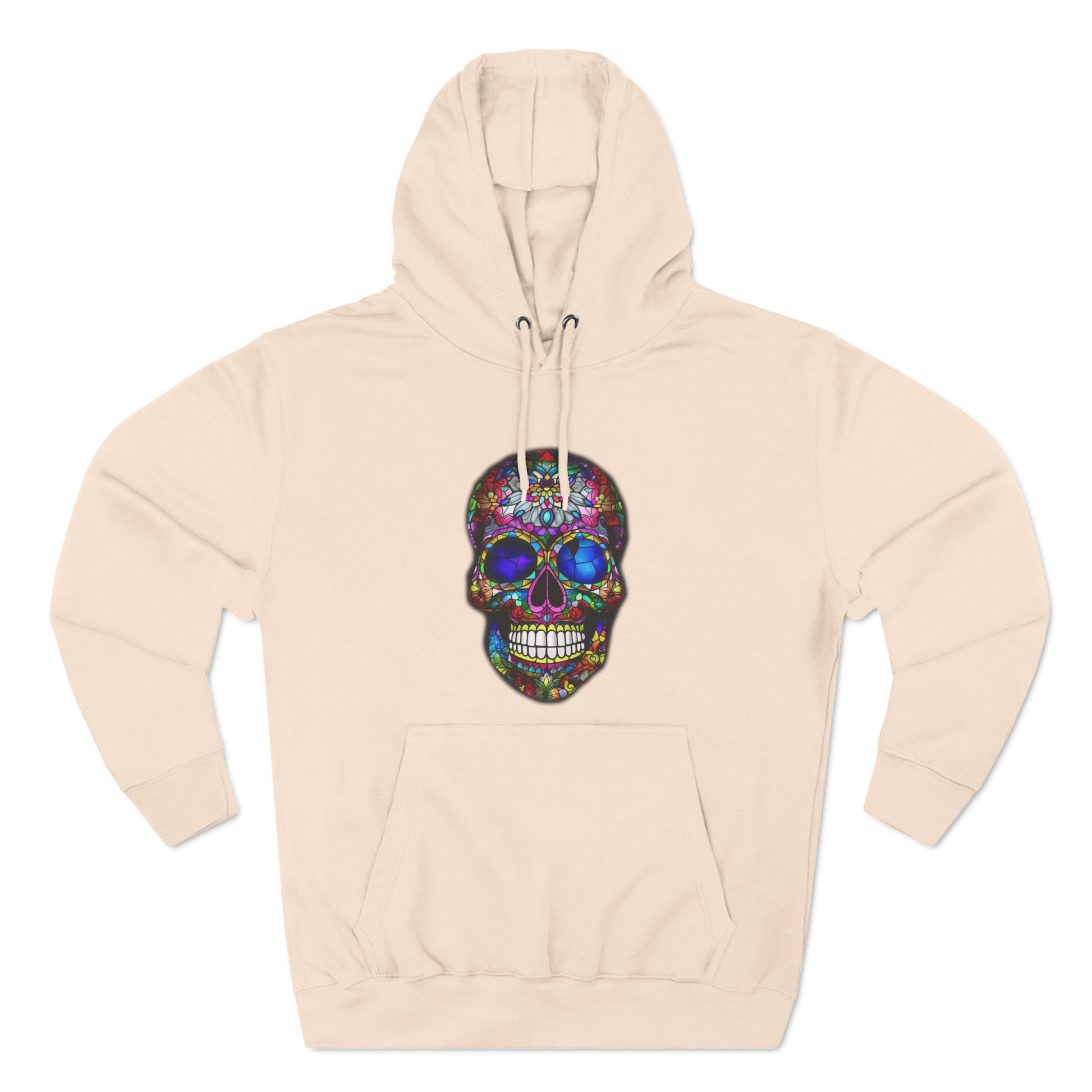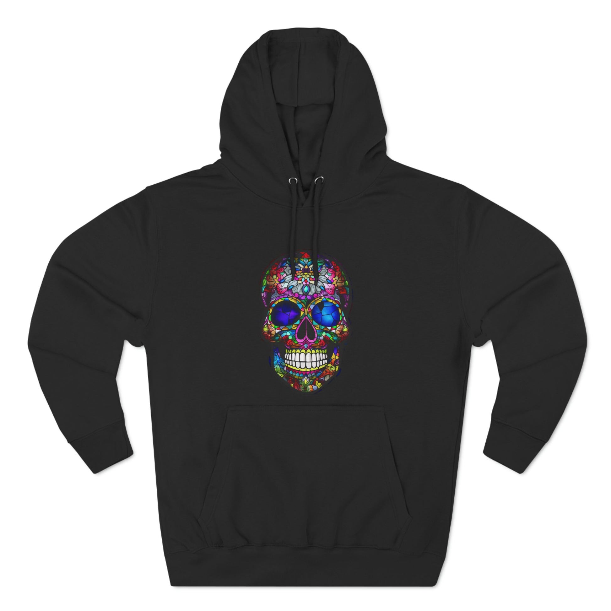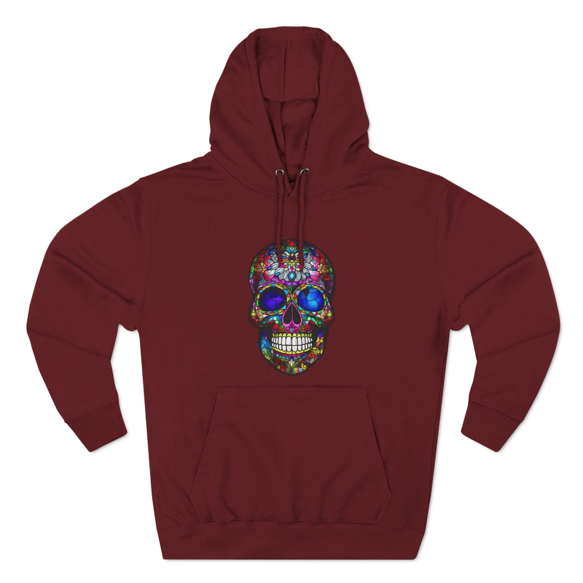 Unique Gift for the person (or yourself) who has wants to stand out in a crowd! Stained Glass Sugar Skull. Unisex Premium Pullover Hoodie.
