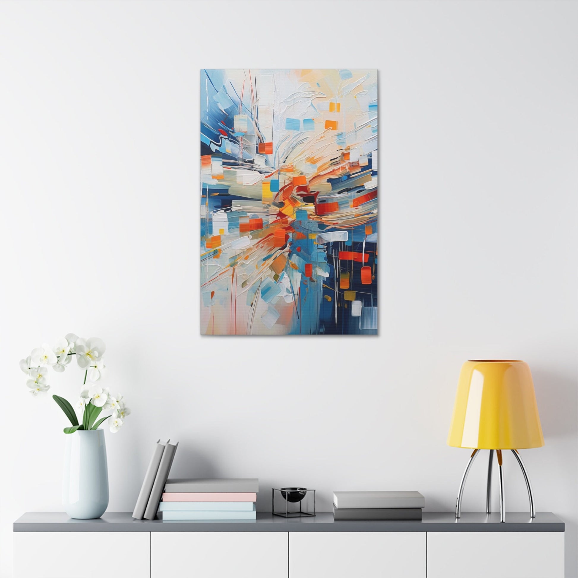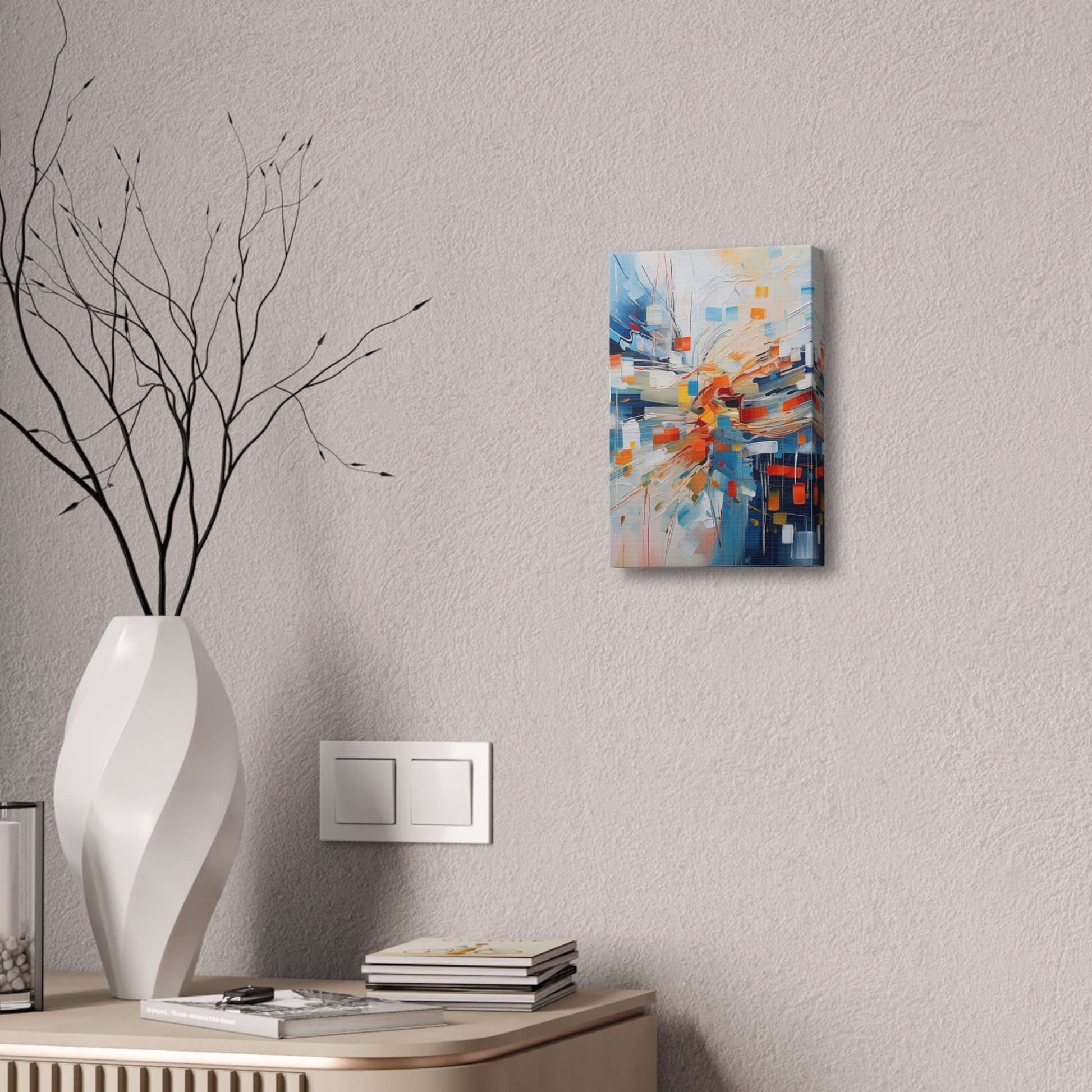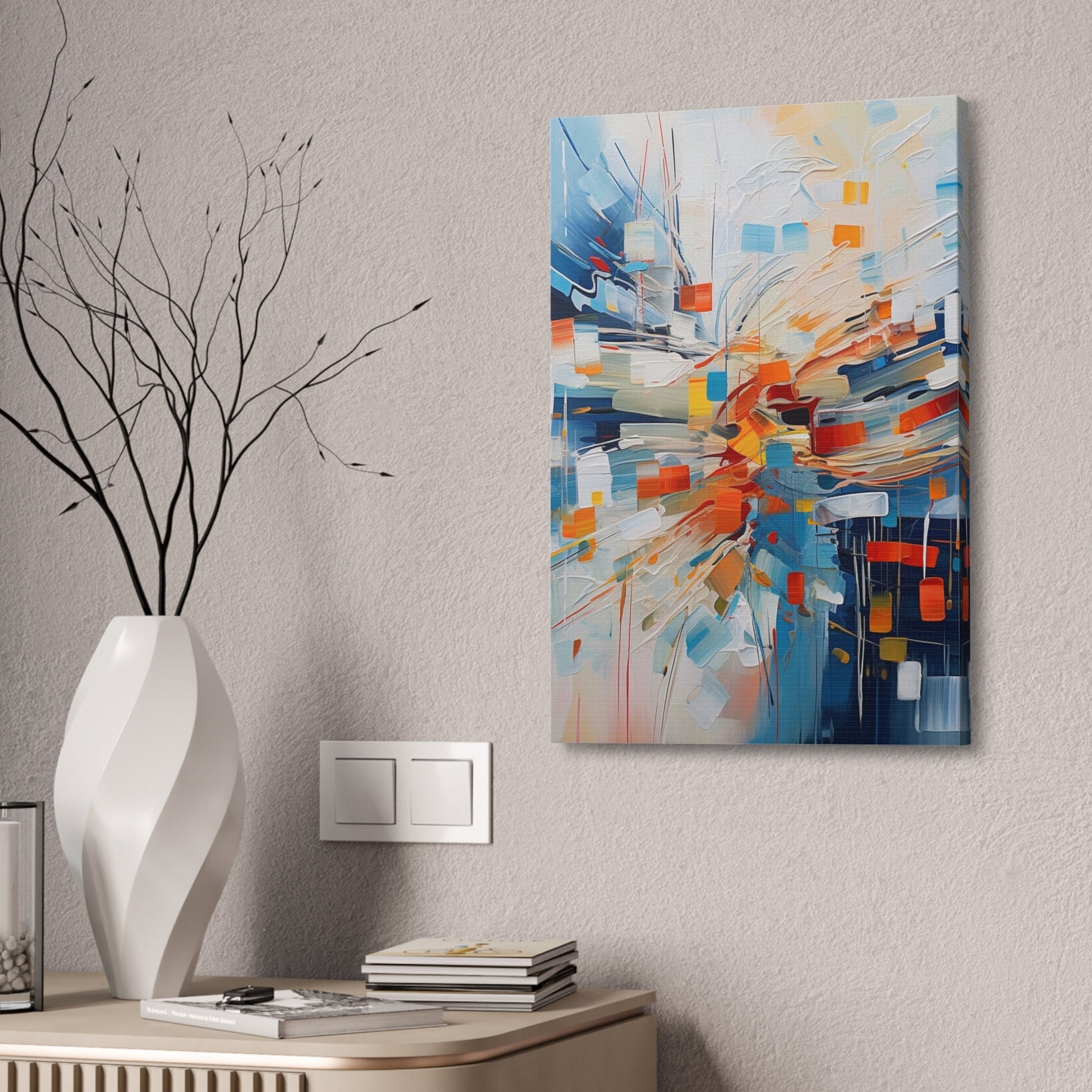 Unique wall art for college apartments or new homes | Abstract Textured Painting Print of White Noise with Red, Blue, and Orange | Ai Art