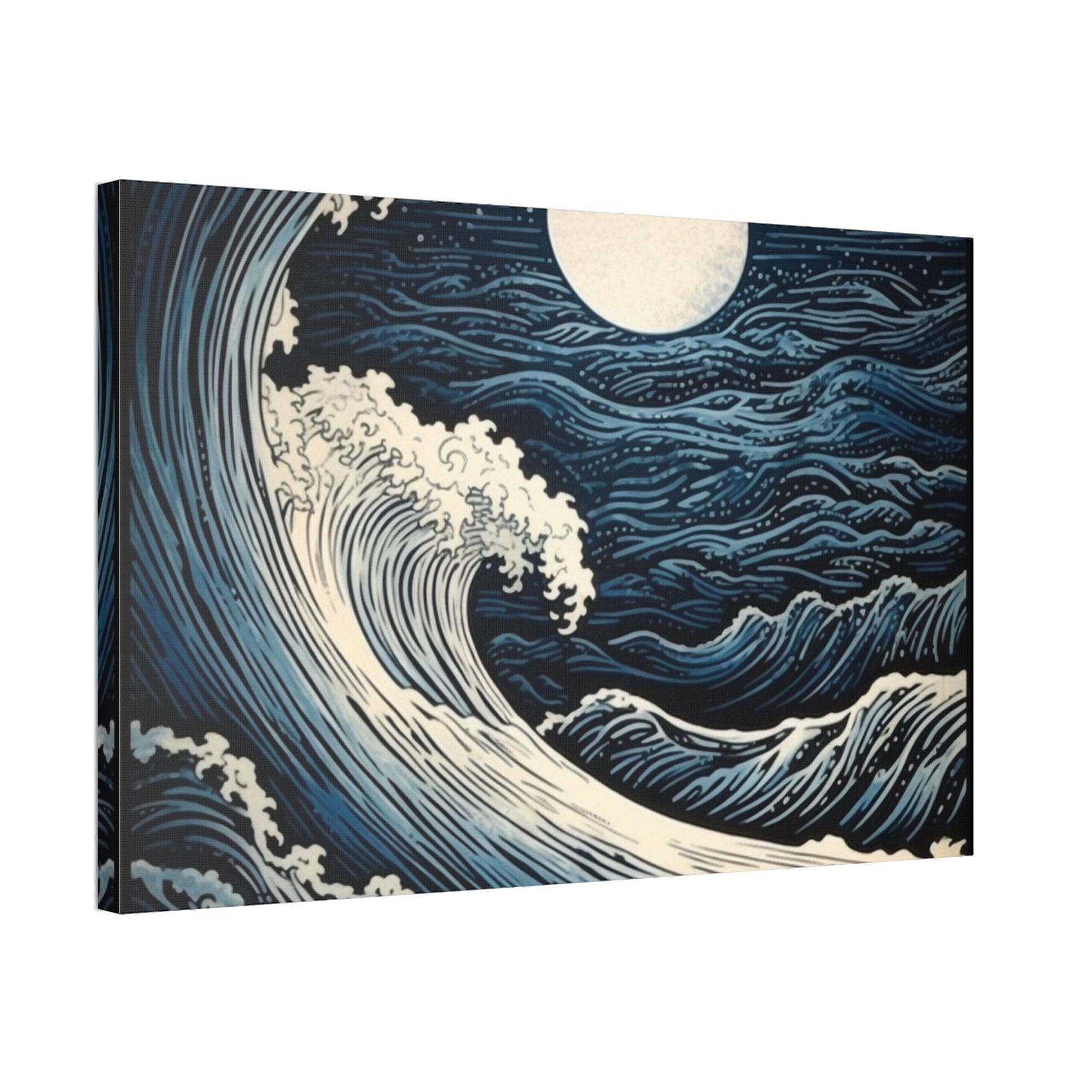 Navy Blue & White Ocean Wave Etching Print. Great for Personal room or Office. Cool enough to add flair at home, yet subtle enough for that professional feel at the office. The art was created using painstakingly crafted word prompts submitted to AI technology with the intention of developing a crisp yet fluid visual display guaranteed to create wonder and discussion.