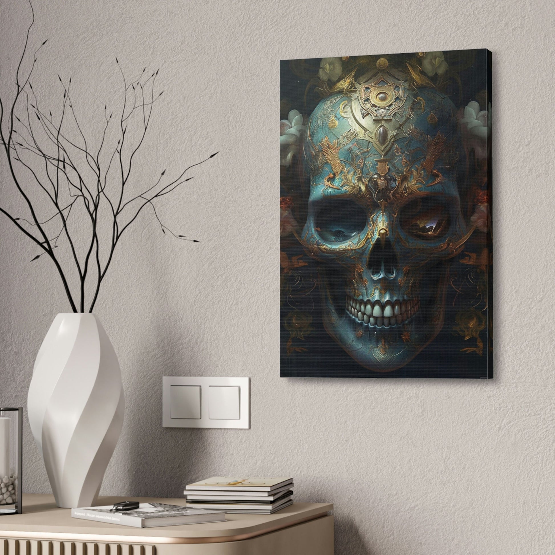 Unique wall art for college apartments or new homes | Ornate Skull #1: Sky Blue AI Hyper-Realistic Wall Art Painting with Intricate Designs