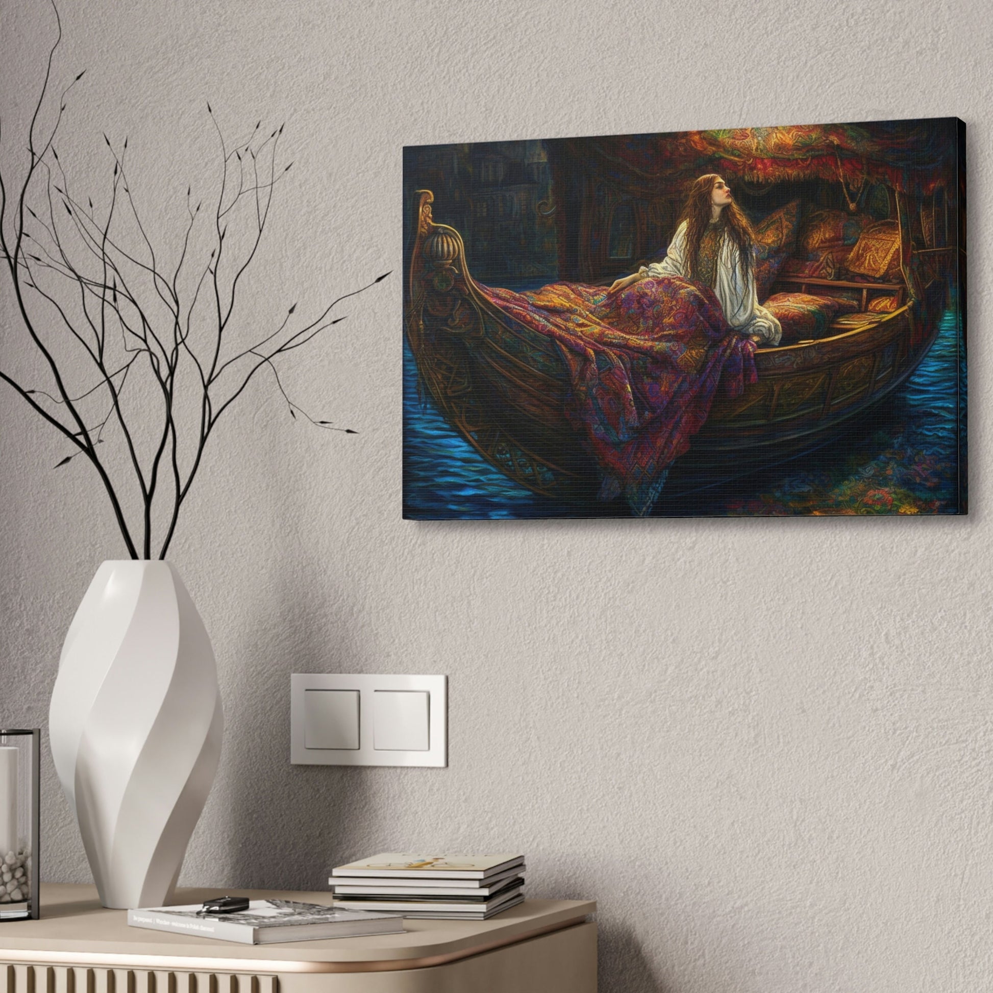 Unique wall art for college apartments or new homes | Reimagined Representation of The Lady Of Shallot by John William Waterhouse
