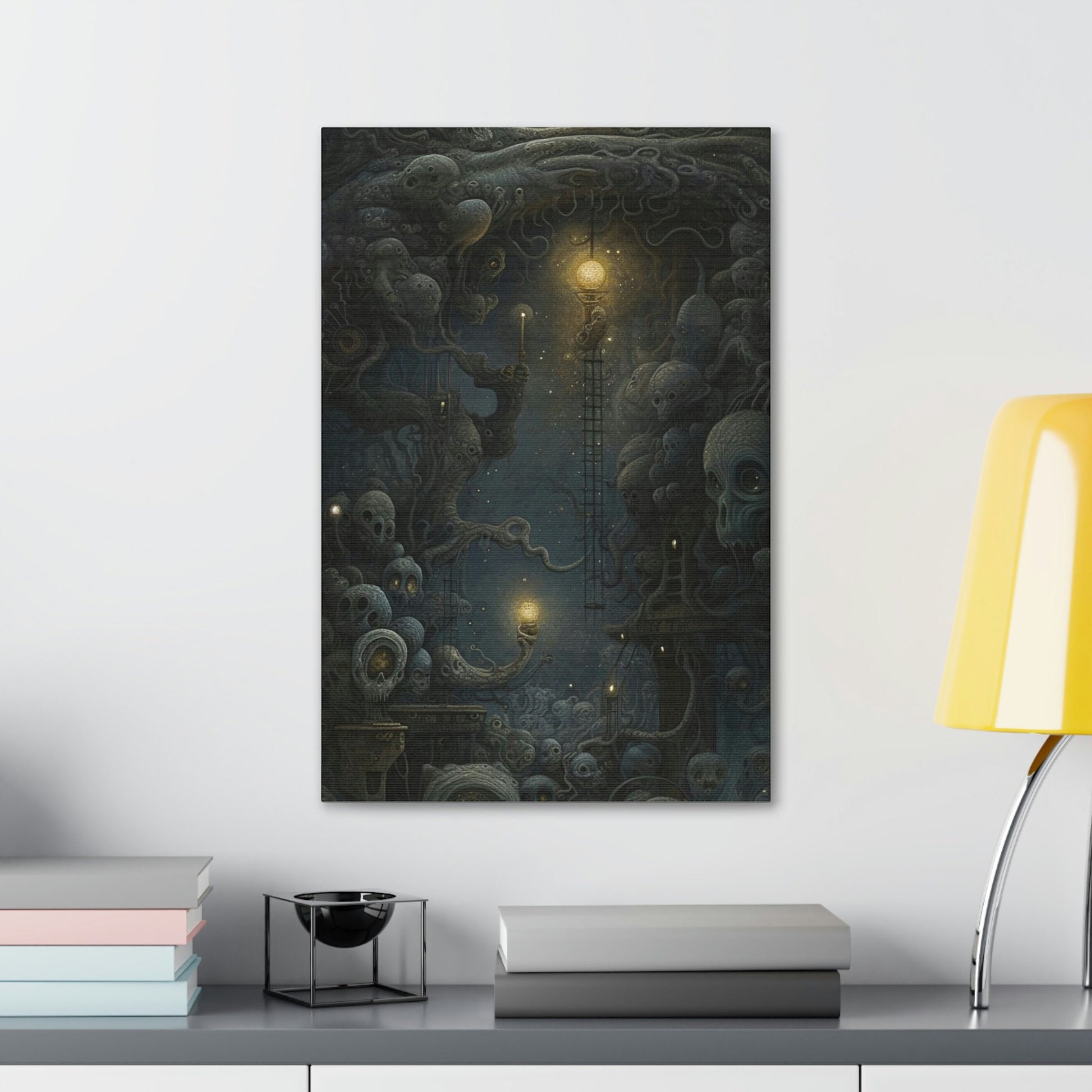 Unique wall art for college apartments or new homes | Surreal AI-Art Print: Starry Night Inspired with H.R. Giger, Szukalski, and Beksinski