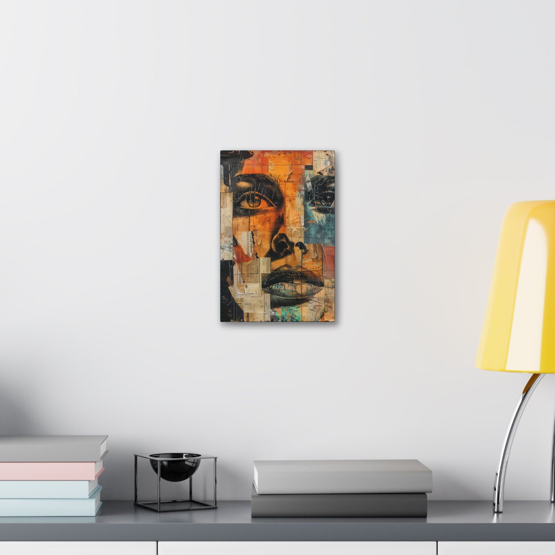 This image features a Close-up portrait of a woman. Paper collage Inspired Home Decor.Thought Provoking.